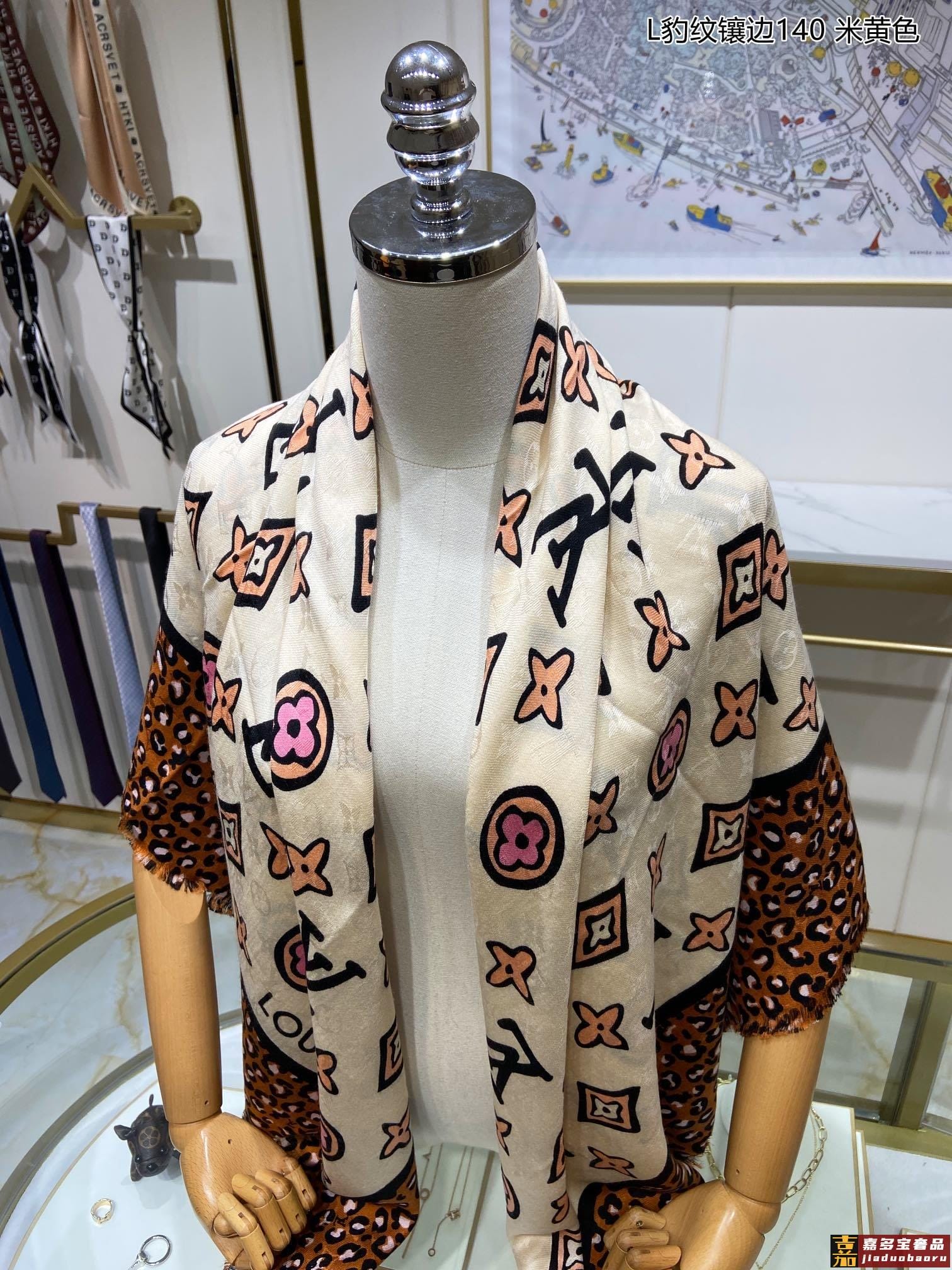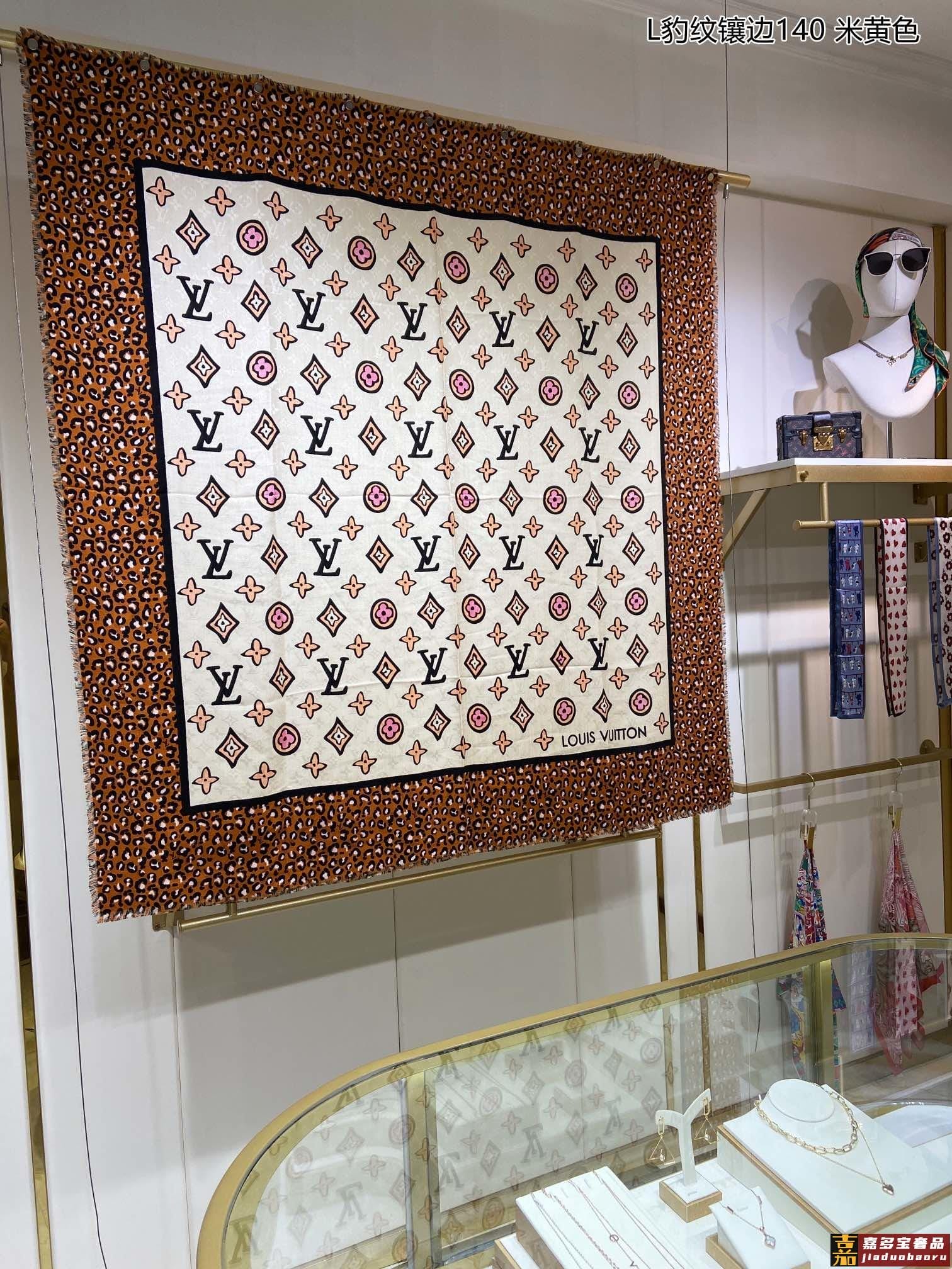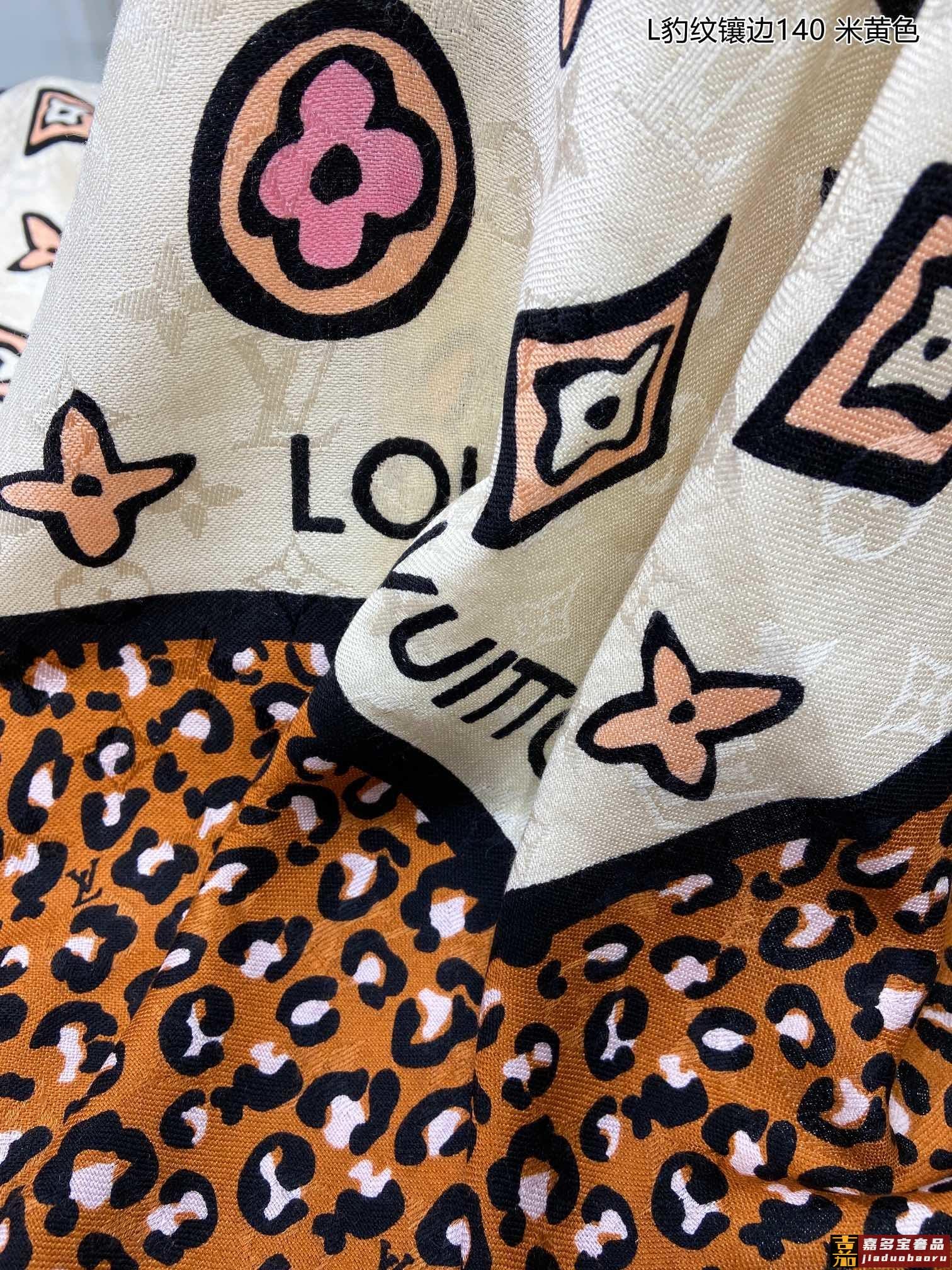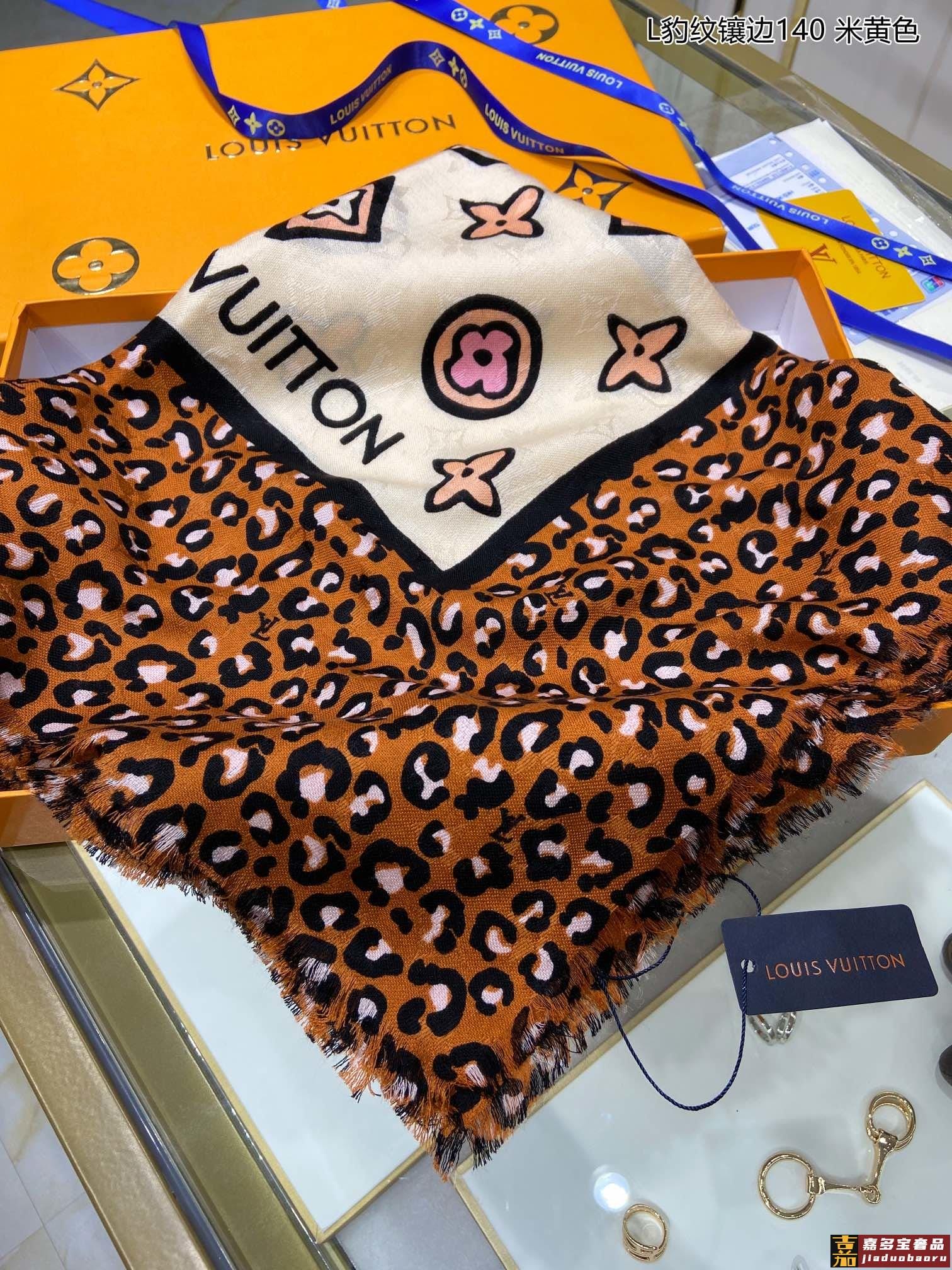 新美极了驴家豹纹镶边提花羊绒方巾披肩取材柔滑丝绒混纺以丝印工