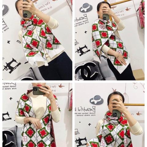 典雅高贵婴儿般的柔软触感同步专柜立体手袋印花羊绒长巾巧妙利用