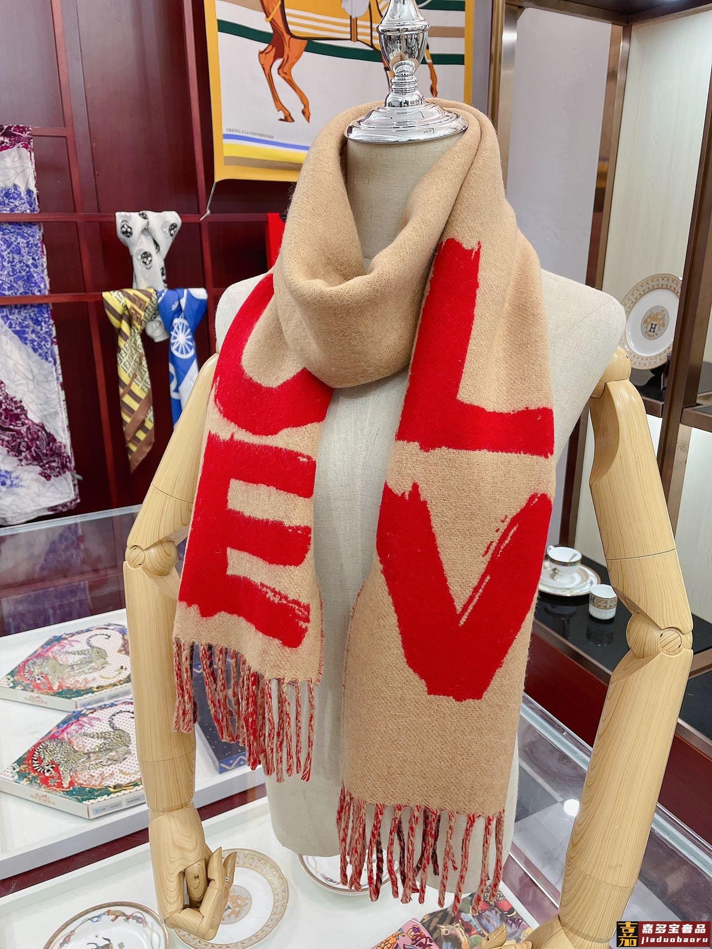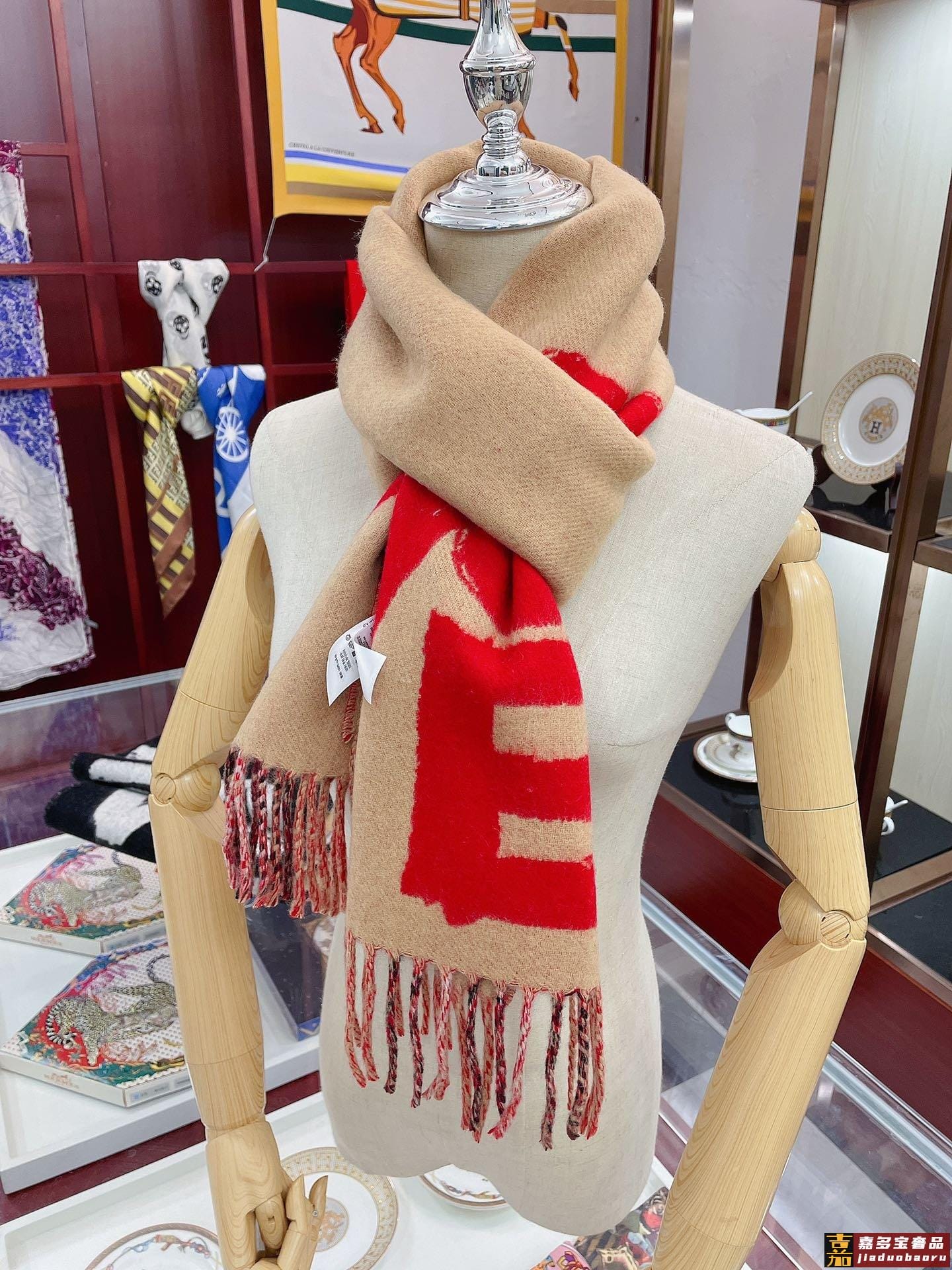 典雅高贵婴儿般的柔软触感同步专柜立体手袋印花羊绒长巾巧妙利用