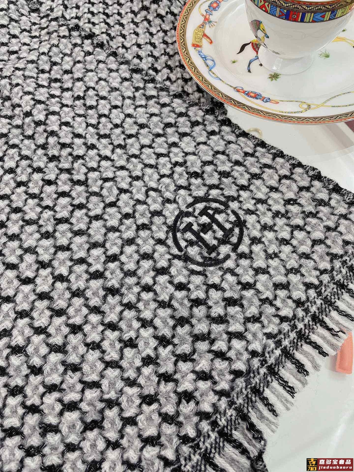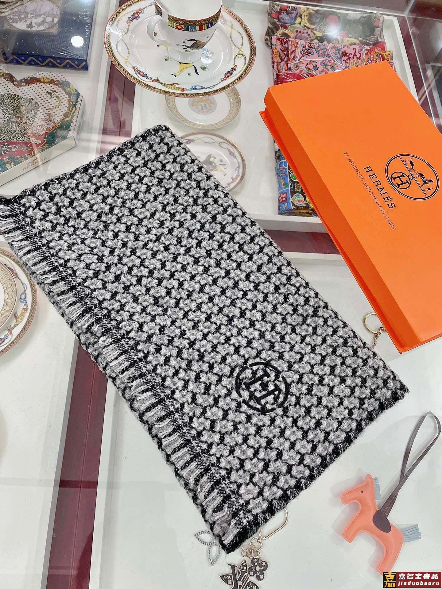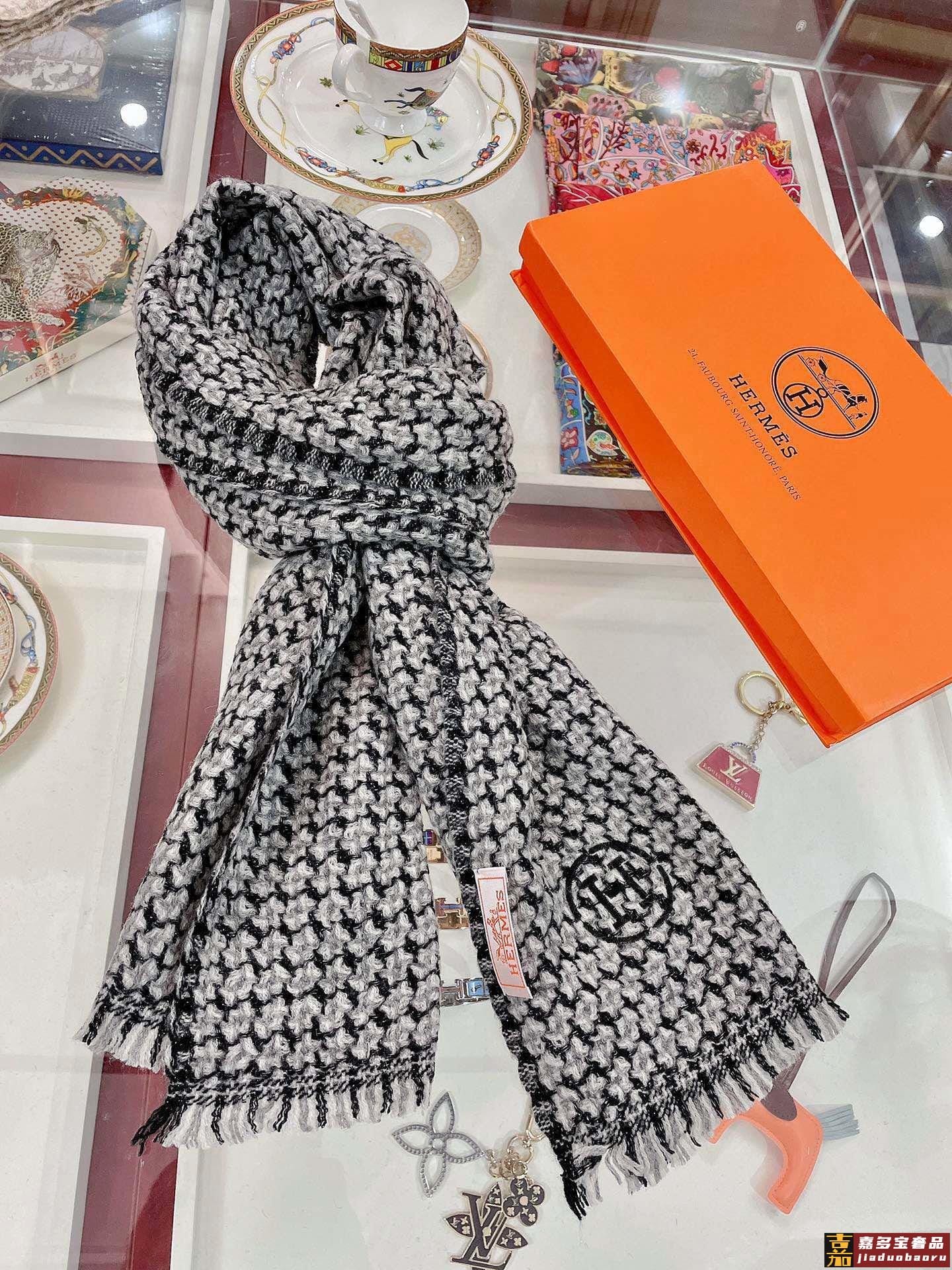 重磅推荐爱马仕秋冬新品银丝小格纹色织羊绒轻缩围巾臻选上乘的山
