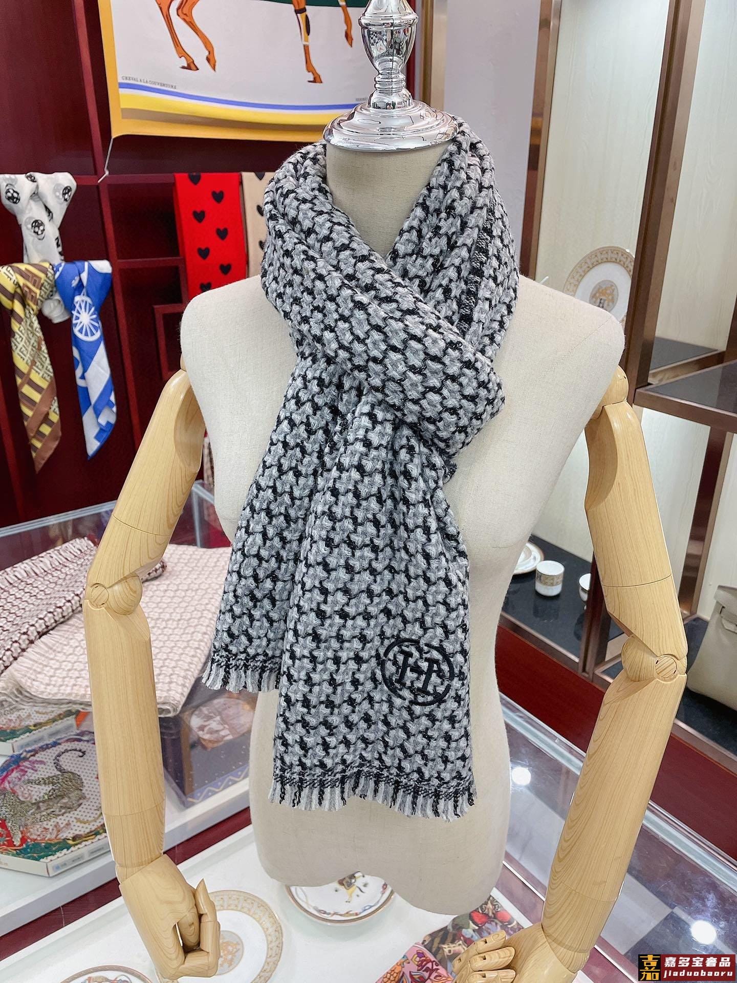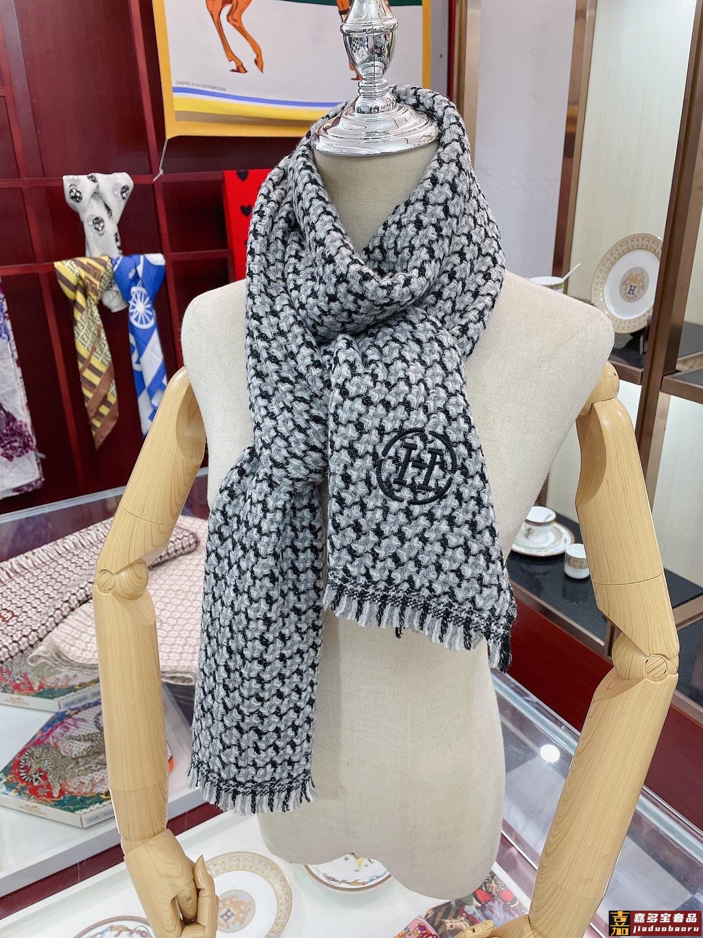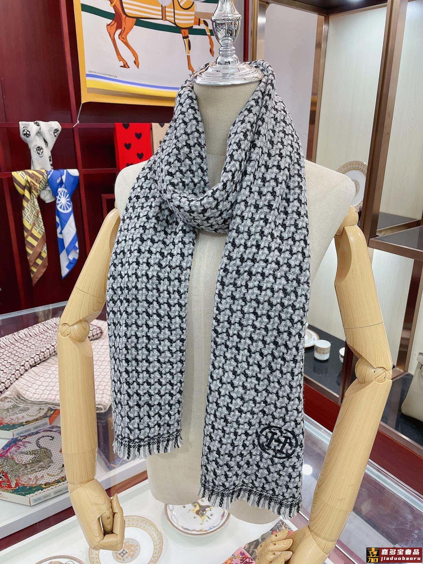 重磅推荐爱马仕秋冬新品银丝小格纹色织羊绒轻缩围巾臻选上乘的山