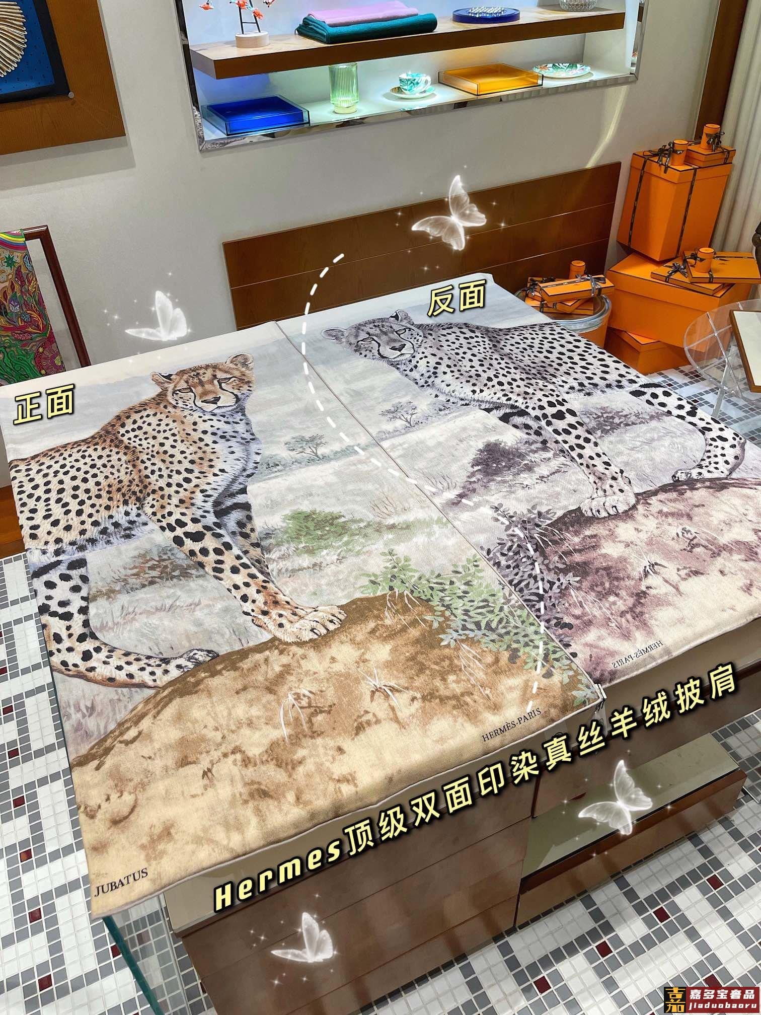 重磅顶级双配色双面印染披肩爱马仕豹子披肩超级绝绝子有没有真的