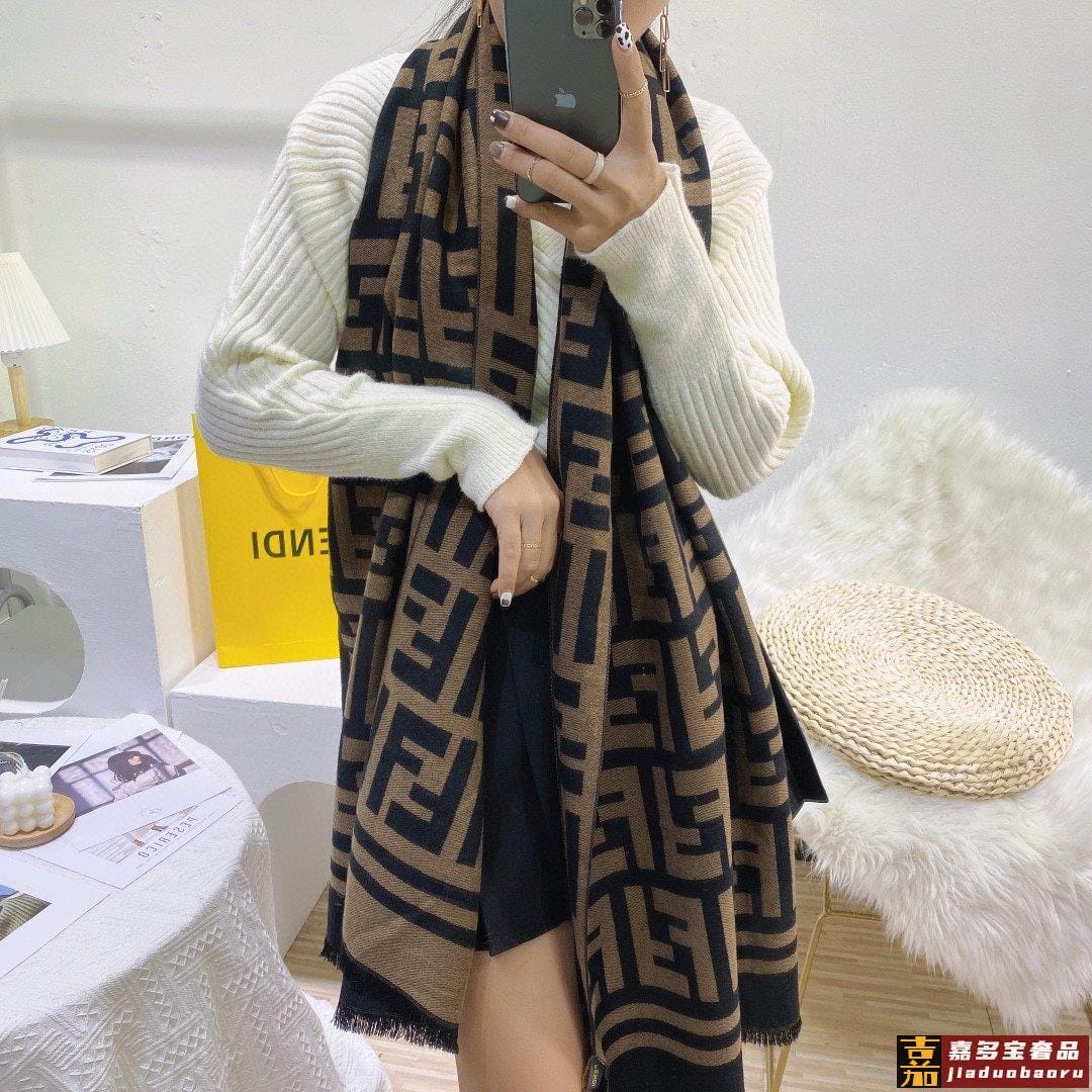 新款羊绒家最新的专柜主打款小型图案长巾度假及日常都非常好搭配