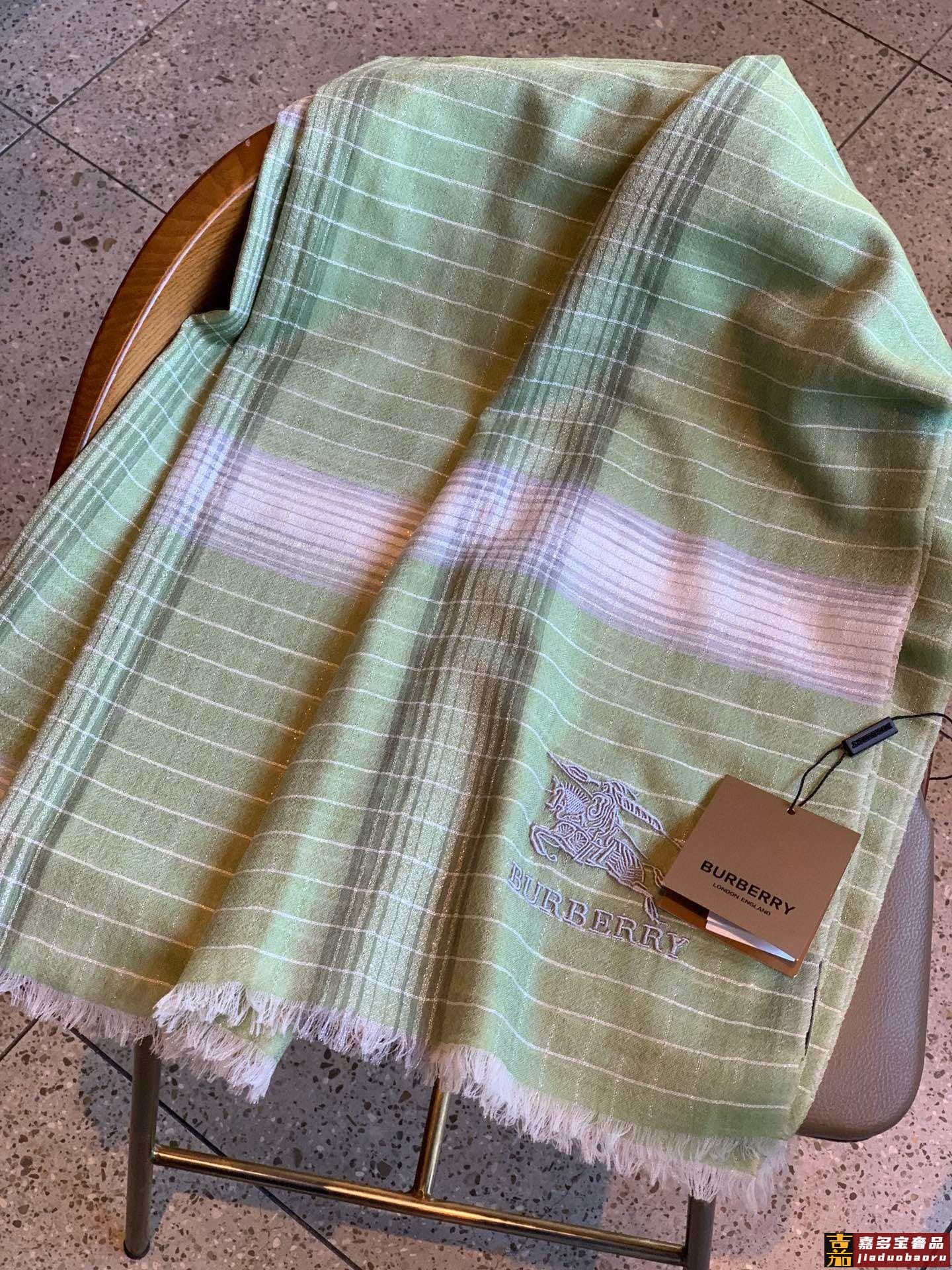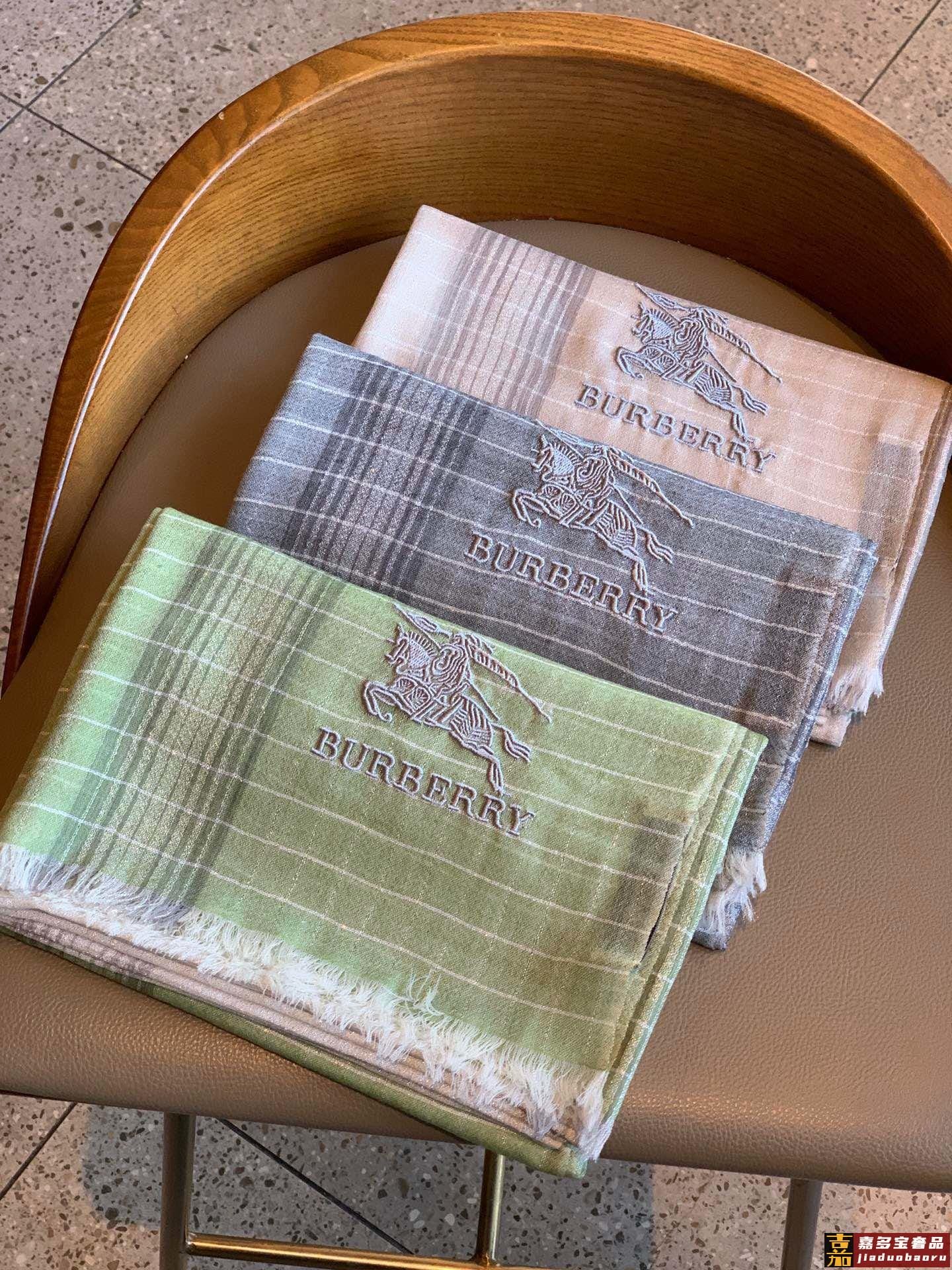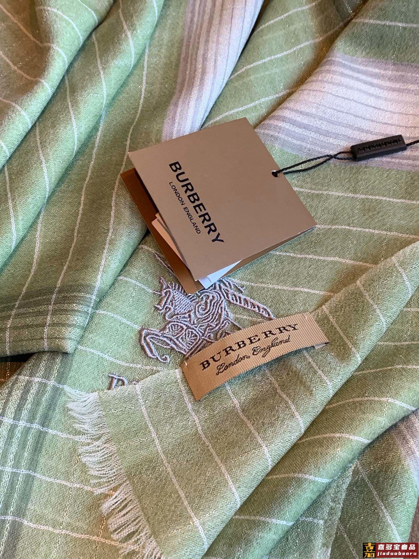 巴宝莉经典纹镶嵌银色闪线玫瑰进口尼泊尔羊绒顶级刺绣围巾高尖端