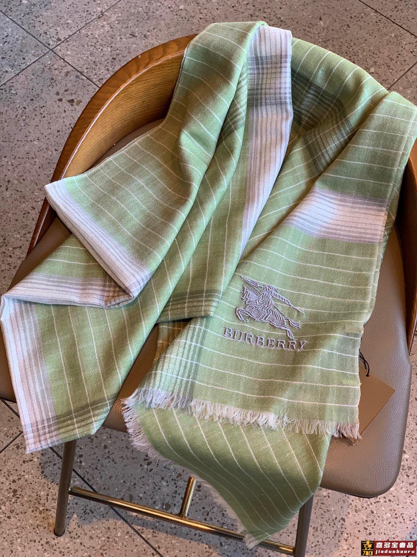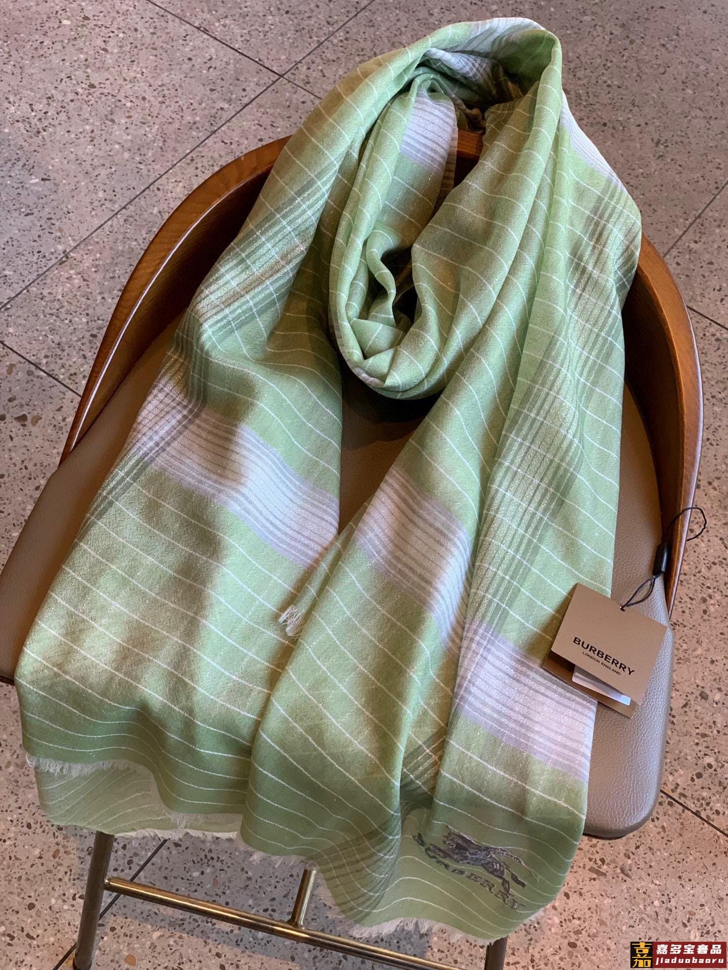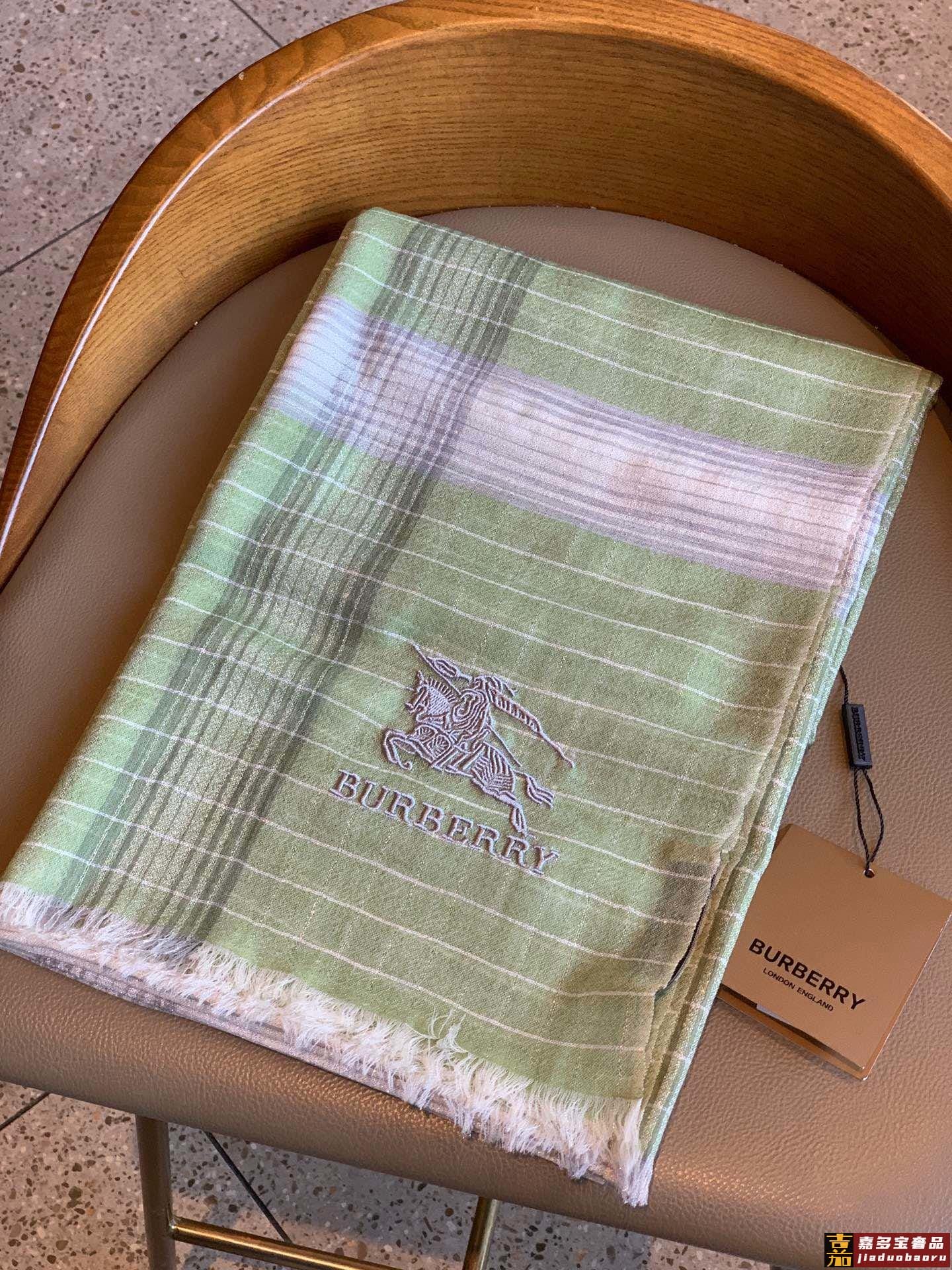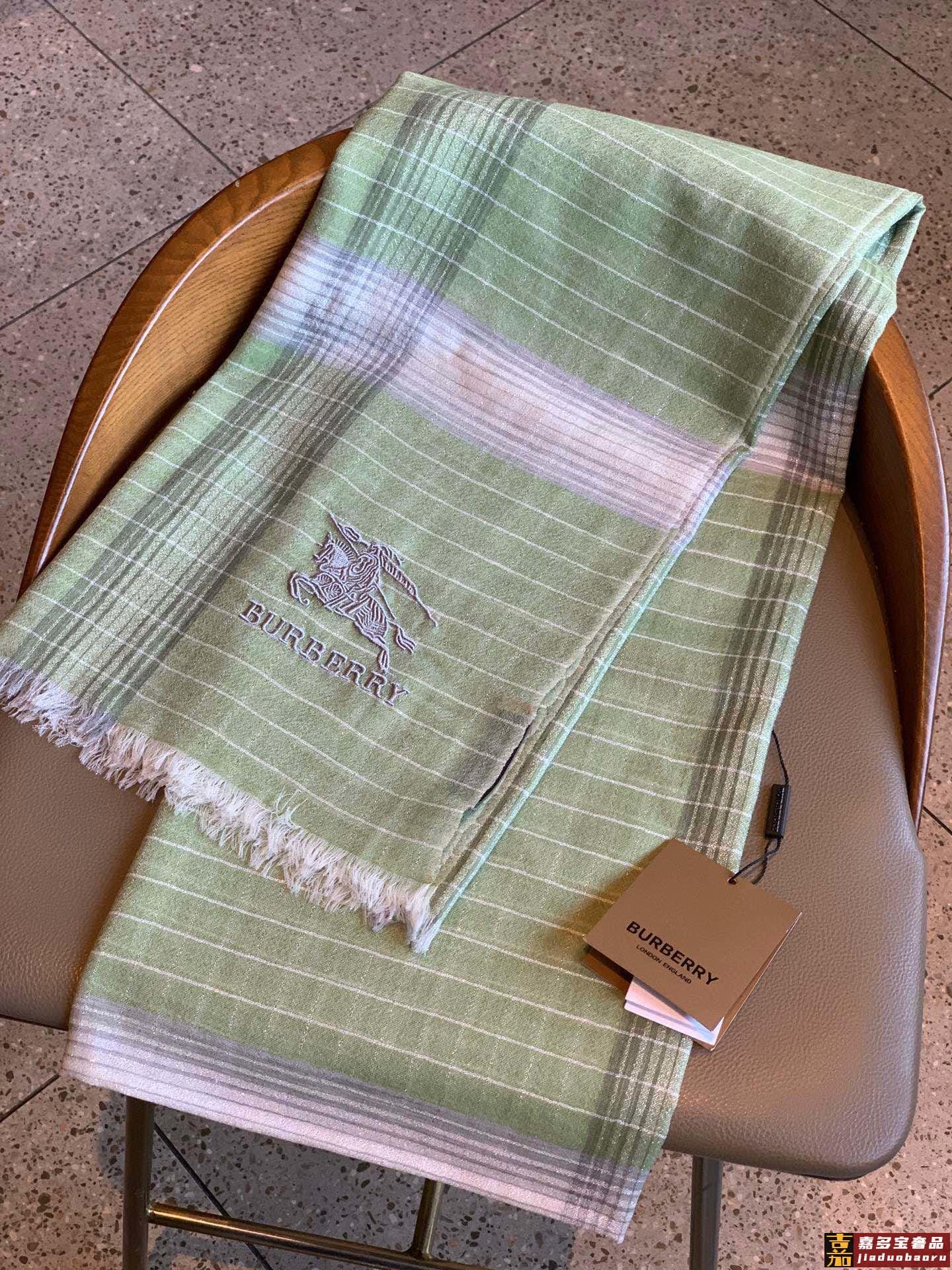 巴宝莉经典纹镶嵌银色闪线玫瑰进口尼泊尔羊绒顶级刺绣围巾高尖端