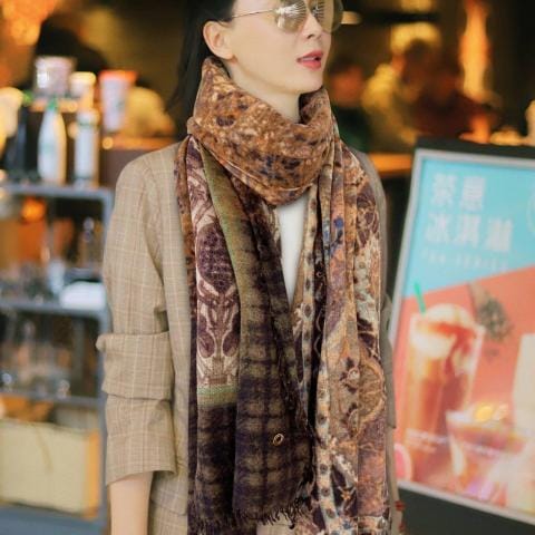 皮雅娜极品花朵毛边长巾纯羊绒长巾高尖端产物重磅呈现绝无仅有史