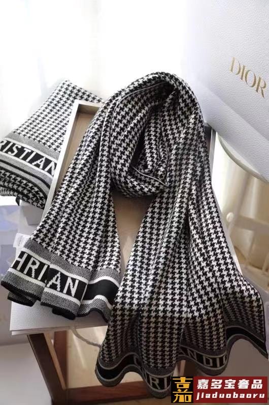 羊毛羊绒混纺针织围巾很多之前经典力作都有千鸟格的身影今年复古