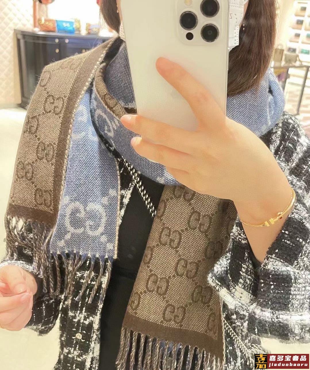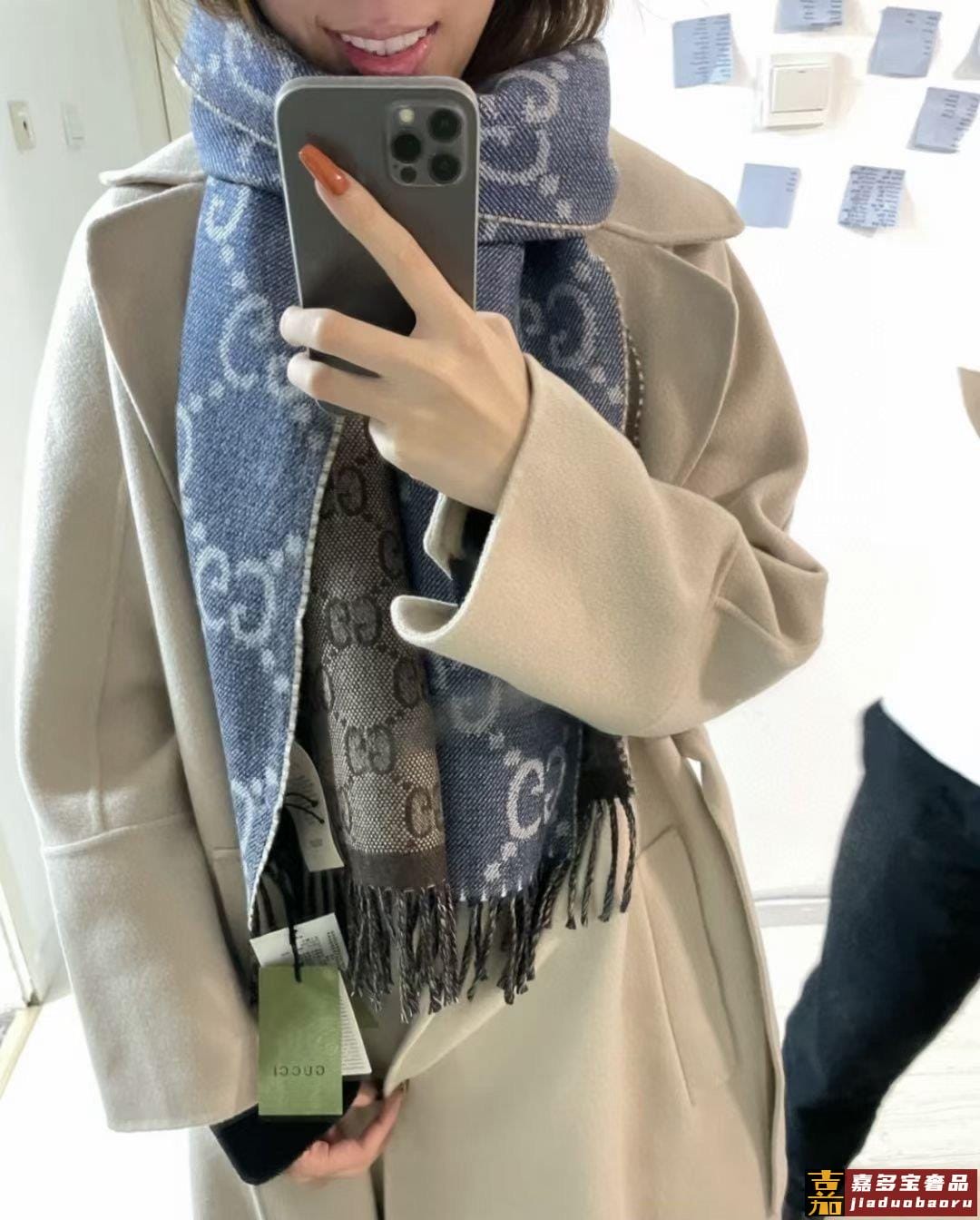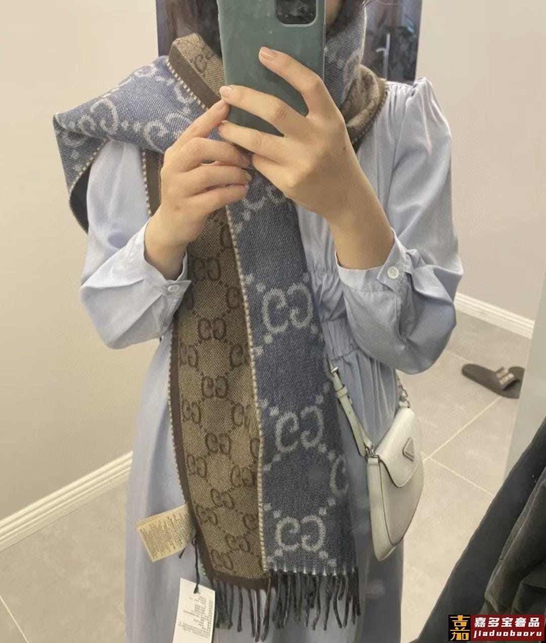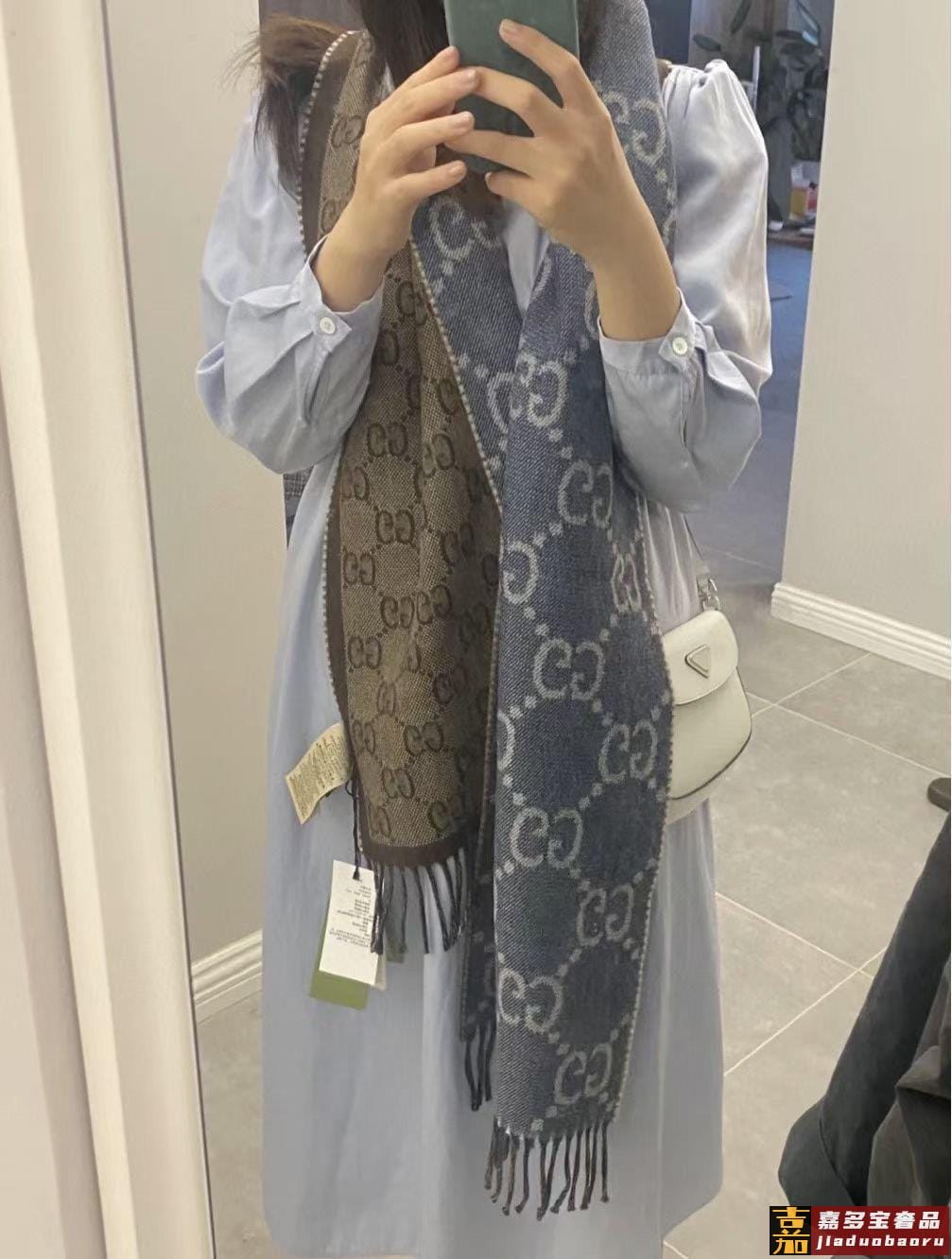 最新字母提花围巾出货都在找的代购爆款经典复古又高级的丹宁蓝色