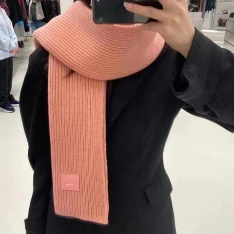 艾克妮瑞典时尚设计师品牌欧美纯羊毛螺纹针织笑脸围巾男女同款两