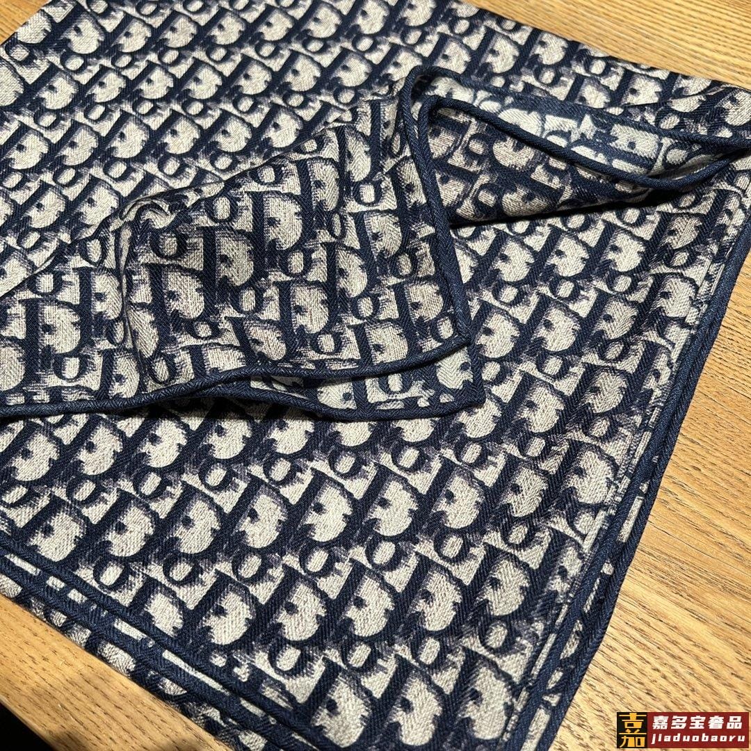 上新最新款金色马衔扣羊绒方巾采用织带元素图案印花工艺呈现于莫