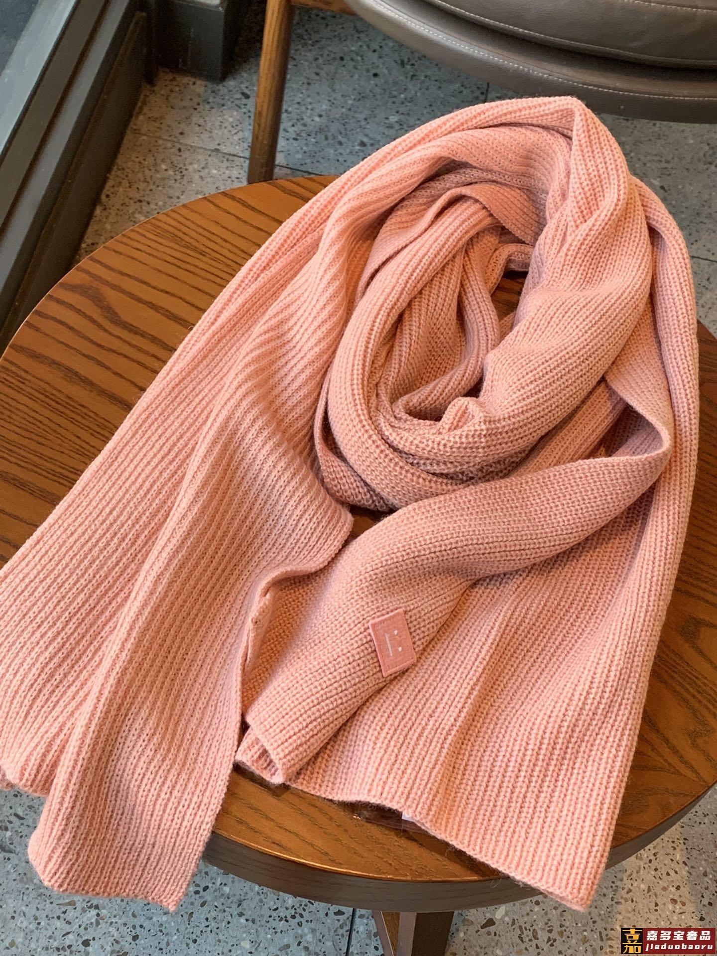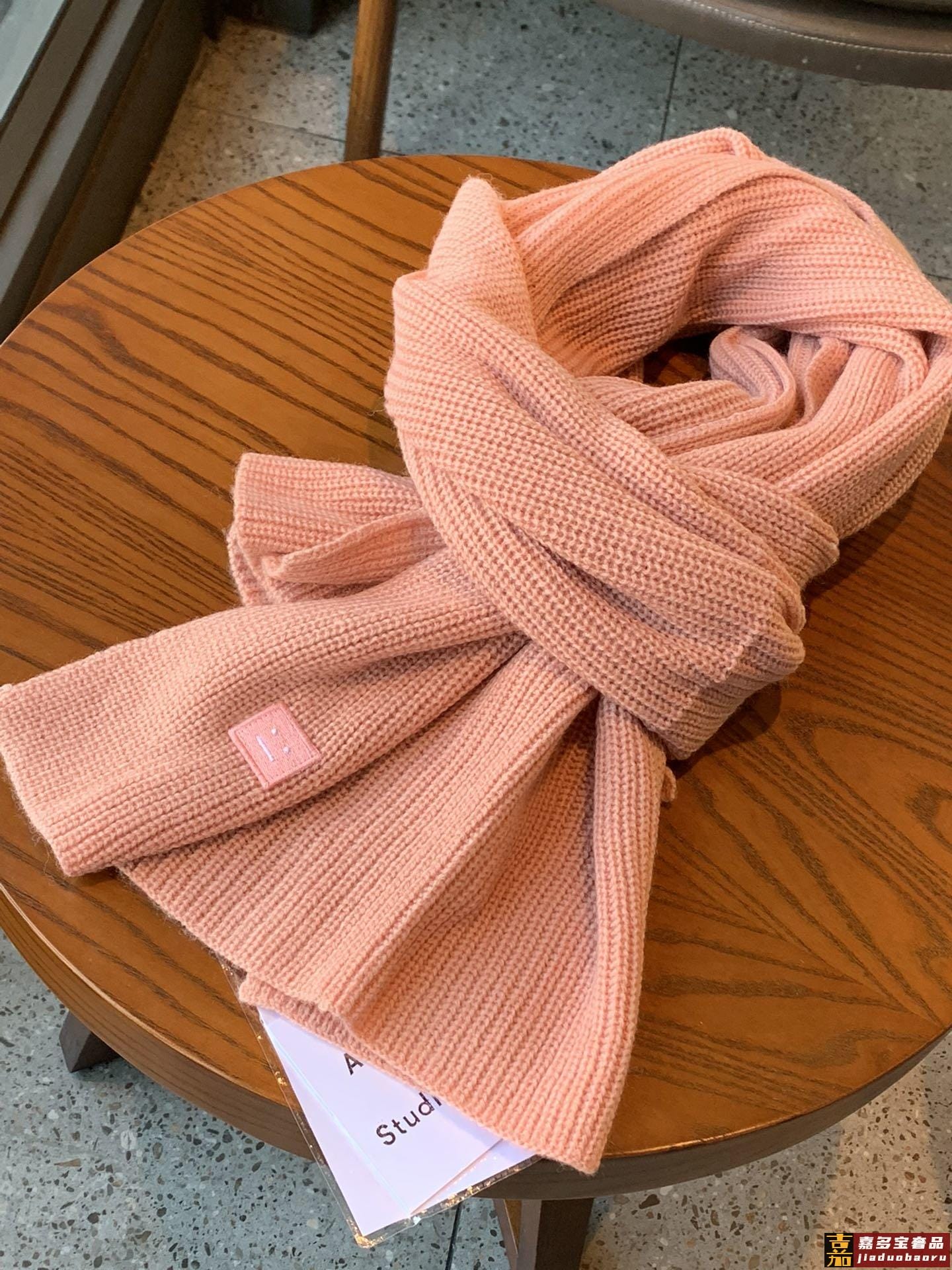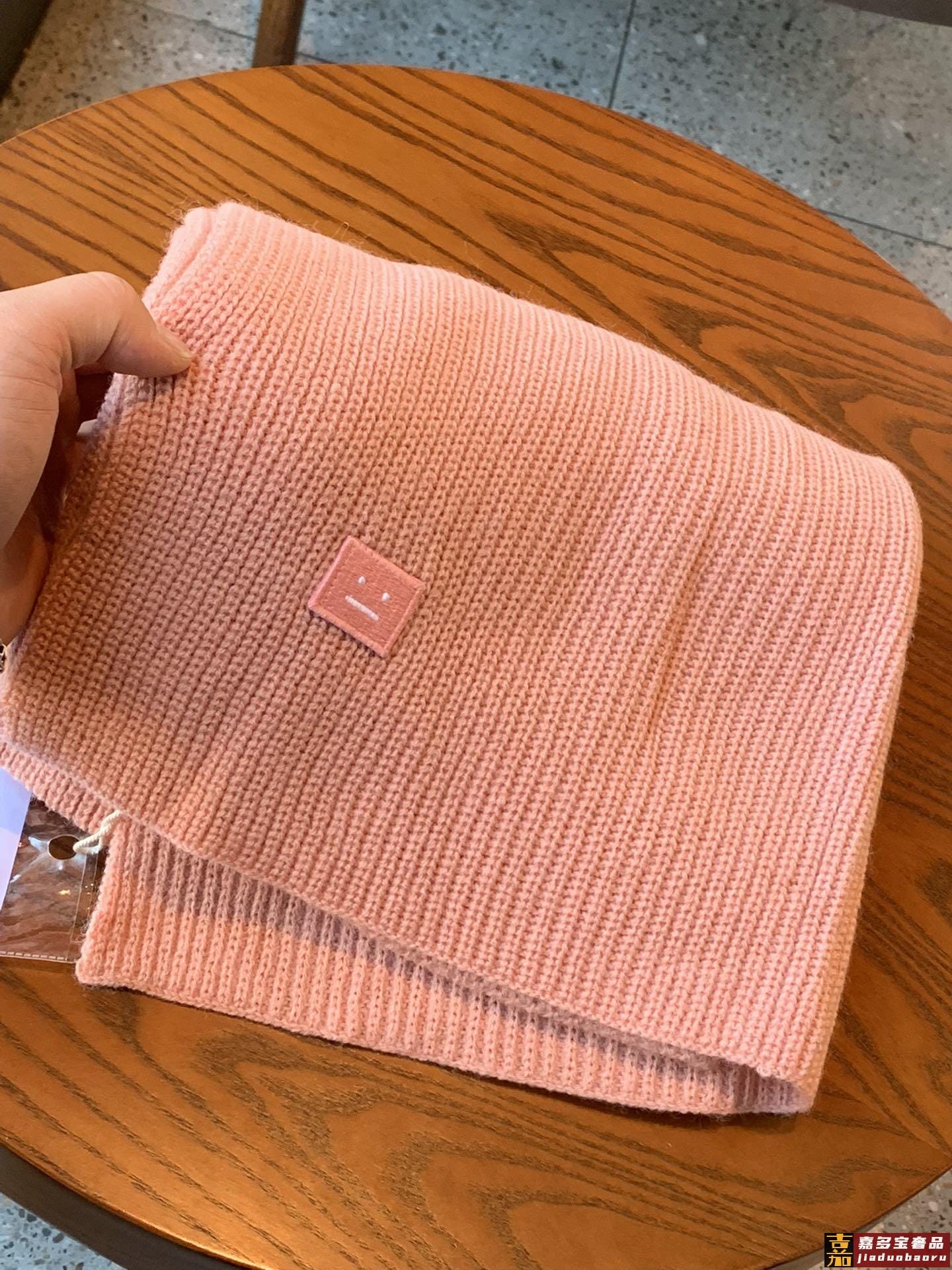 艾克妮瑞典时尚设计师品牌欧美纯羊毛螺纹针织笑脸围巾男女同款两