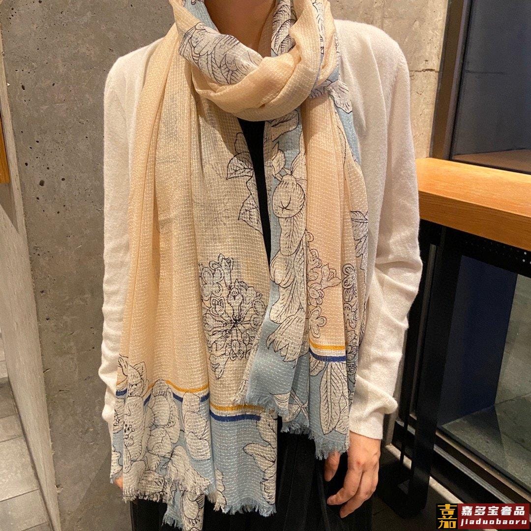 同步更新羊绒方巾披肩以经典剪裁呈现崭新印花完成对方巾的当代解