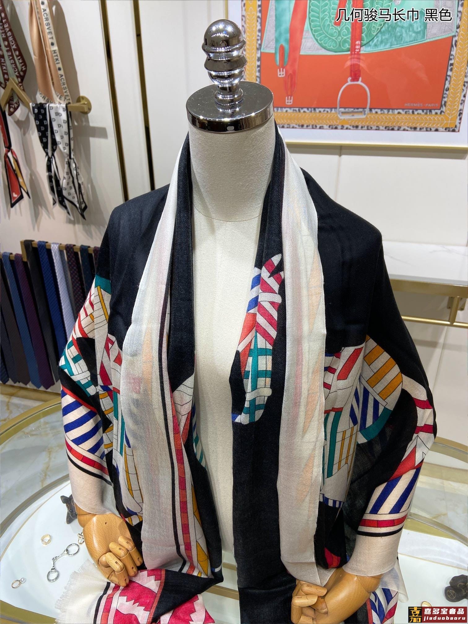羊绒上新牛逼爆款超值回馈几何骏马长巾羊绒印花绝对会尖叫此款是