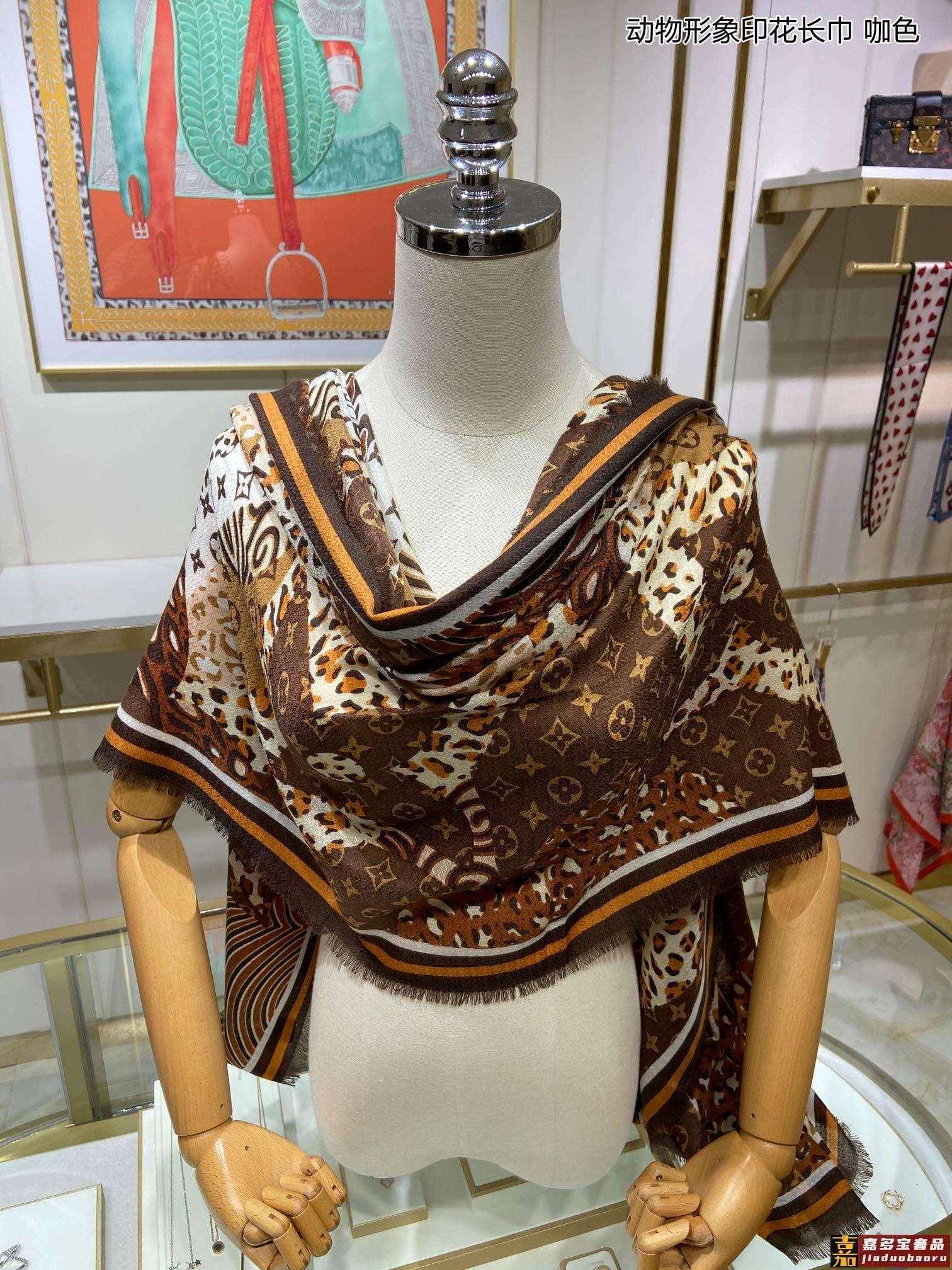 新驴家最最新的专柜秋冬新款硬箱元素披肩取材细腻羊绒印花重绎路