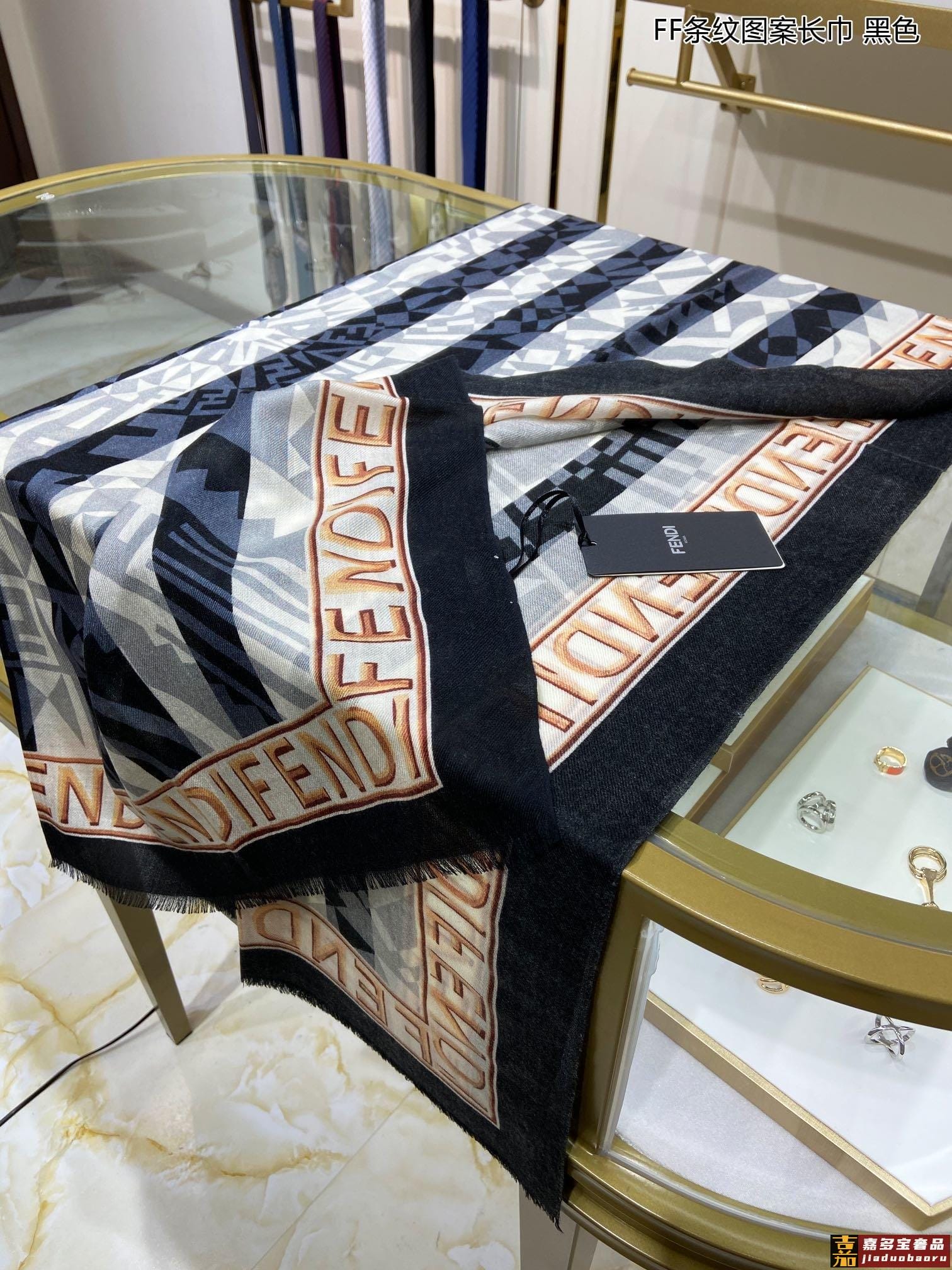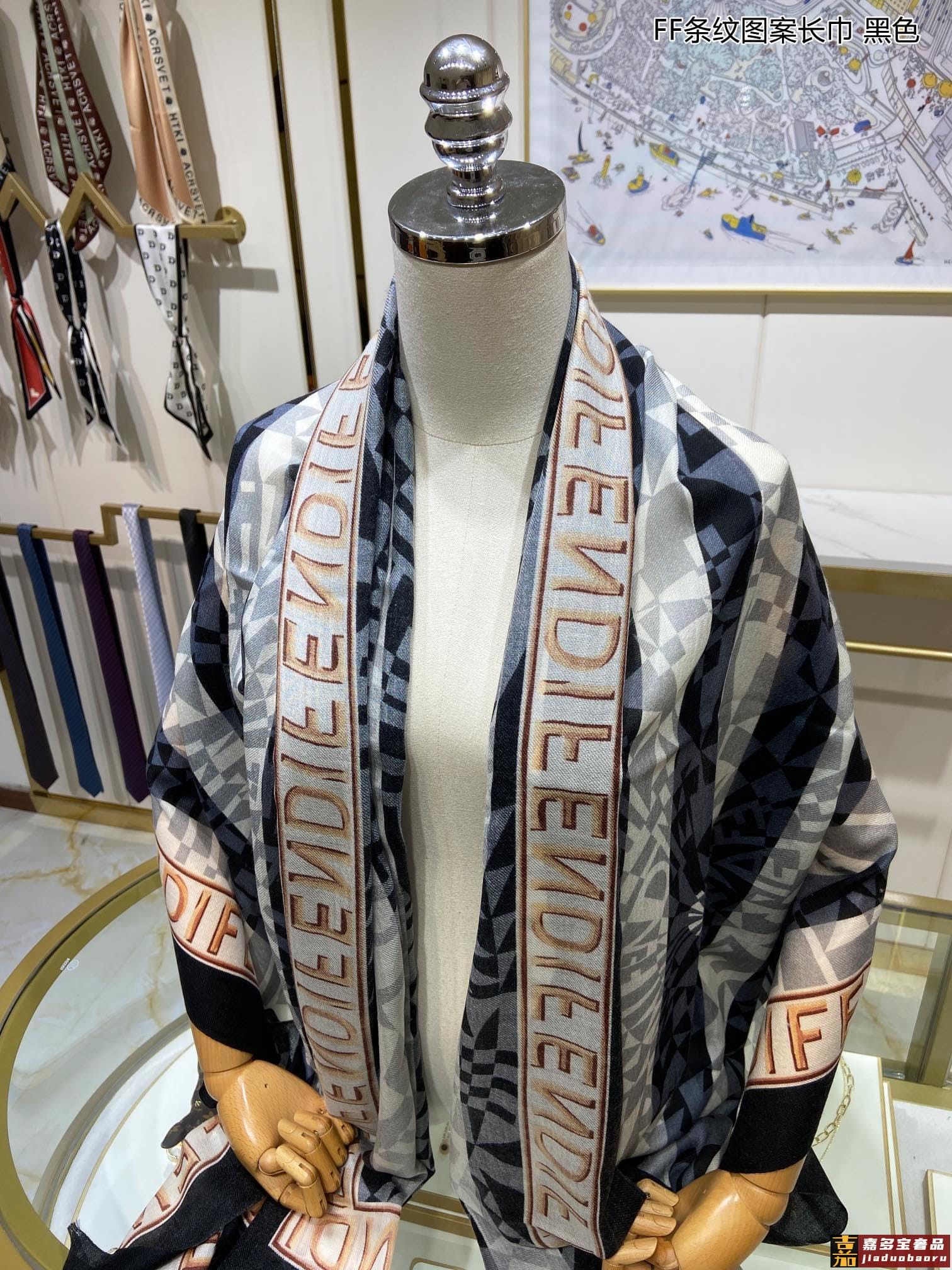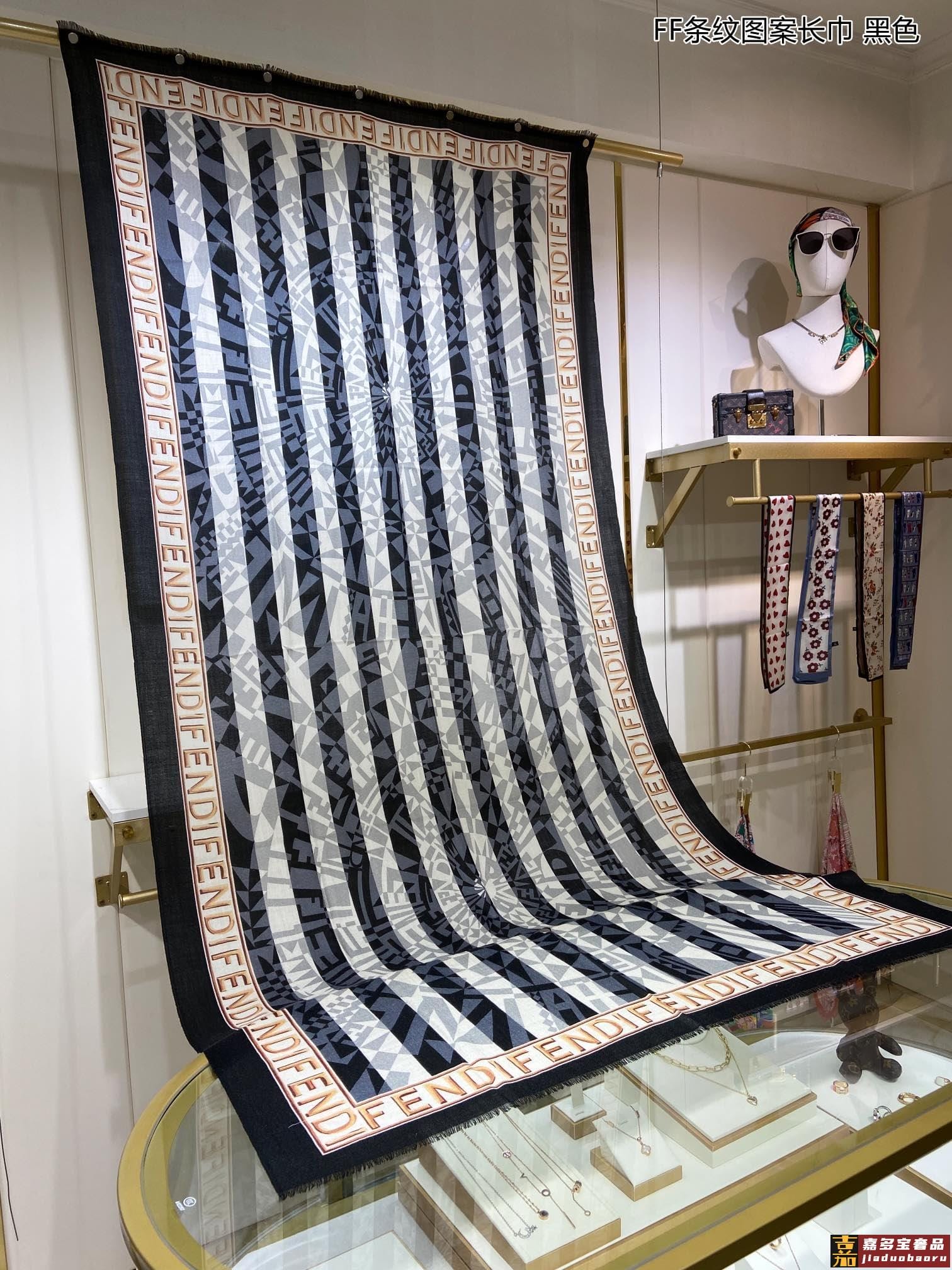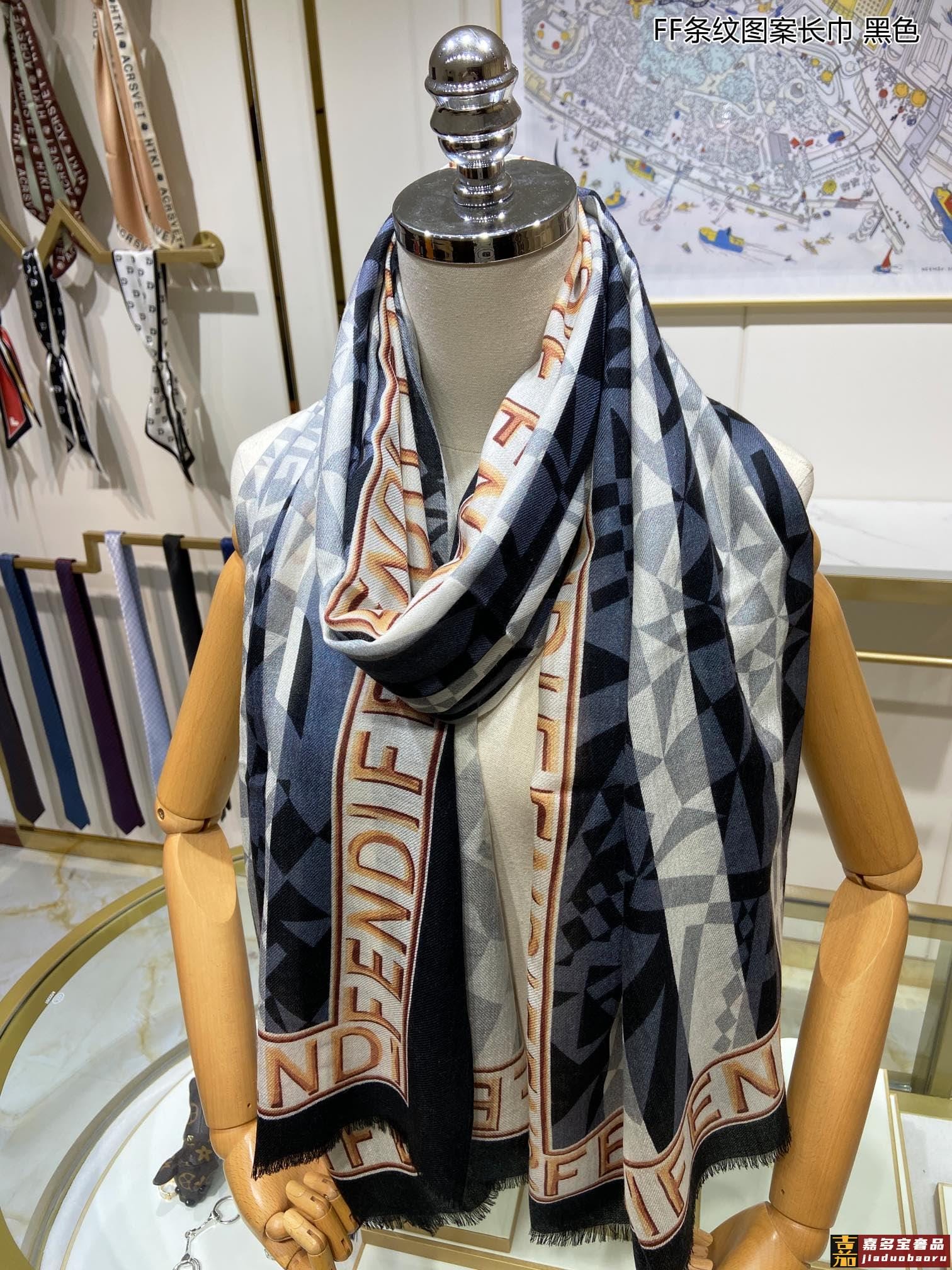 新款羊绒家最新的专柜主打款条纹图案长巾度假及日常都非常好搭配