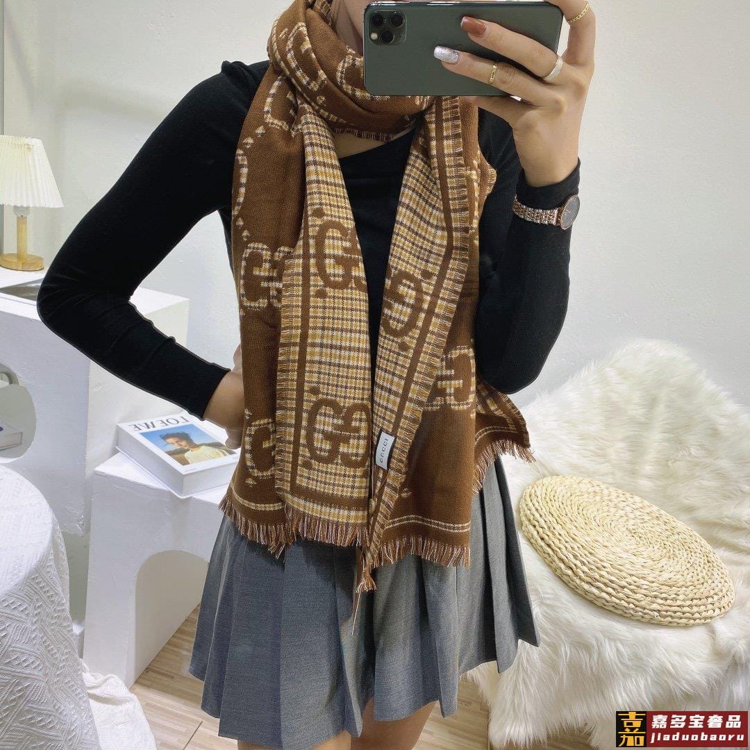 货专柜同步古奇双提花双面披肩款式经典大方时髦不过时随便什么时