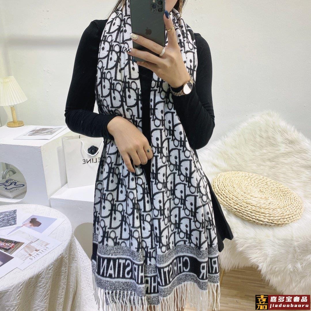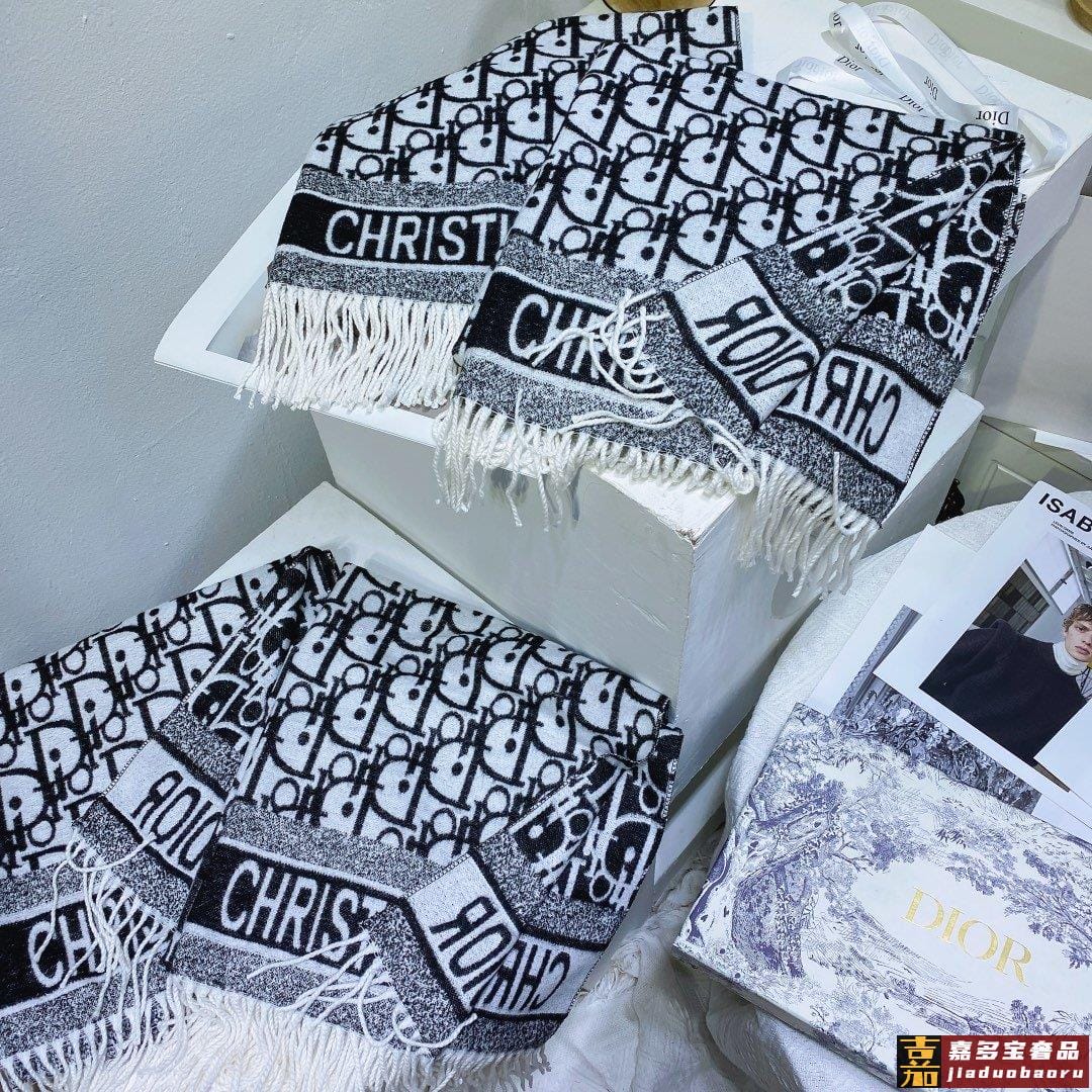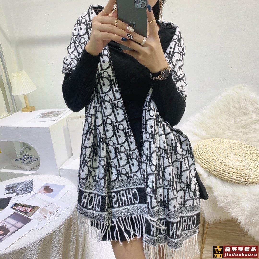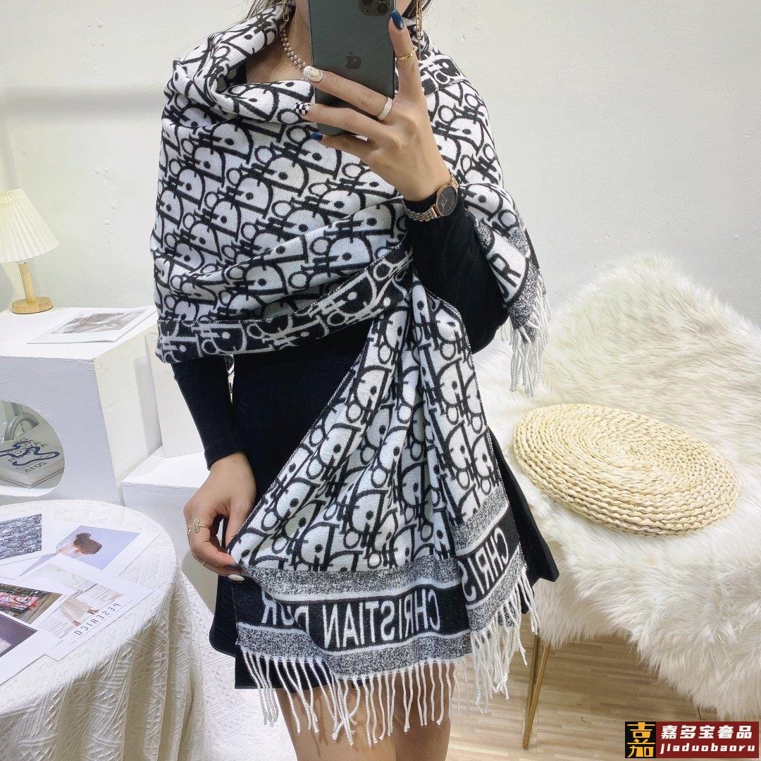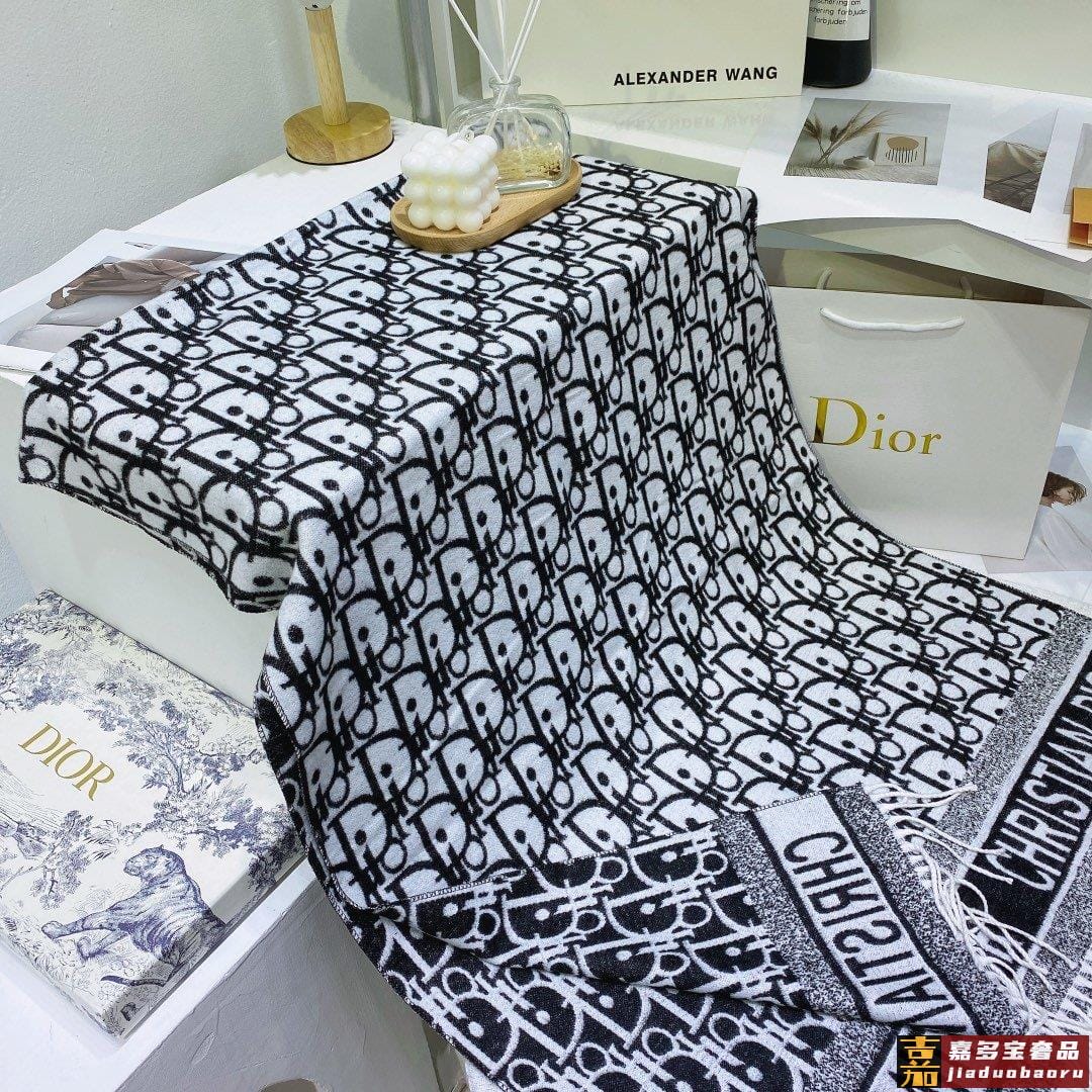 上新迪奥家专柜新款千鸟格羊绒长巾美翻了御用殿堂级极品纯兔绒经