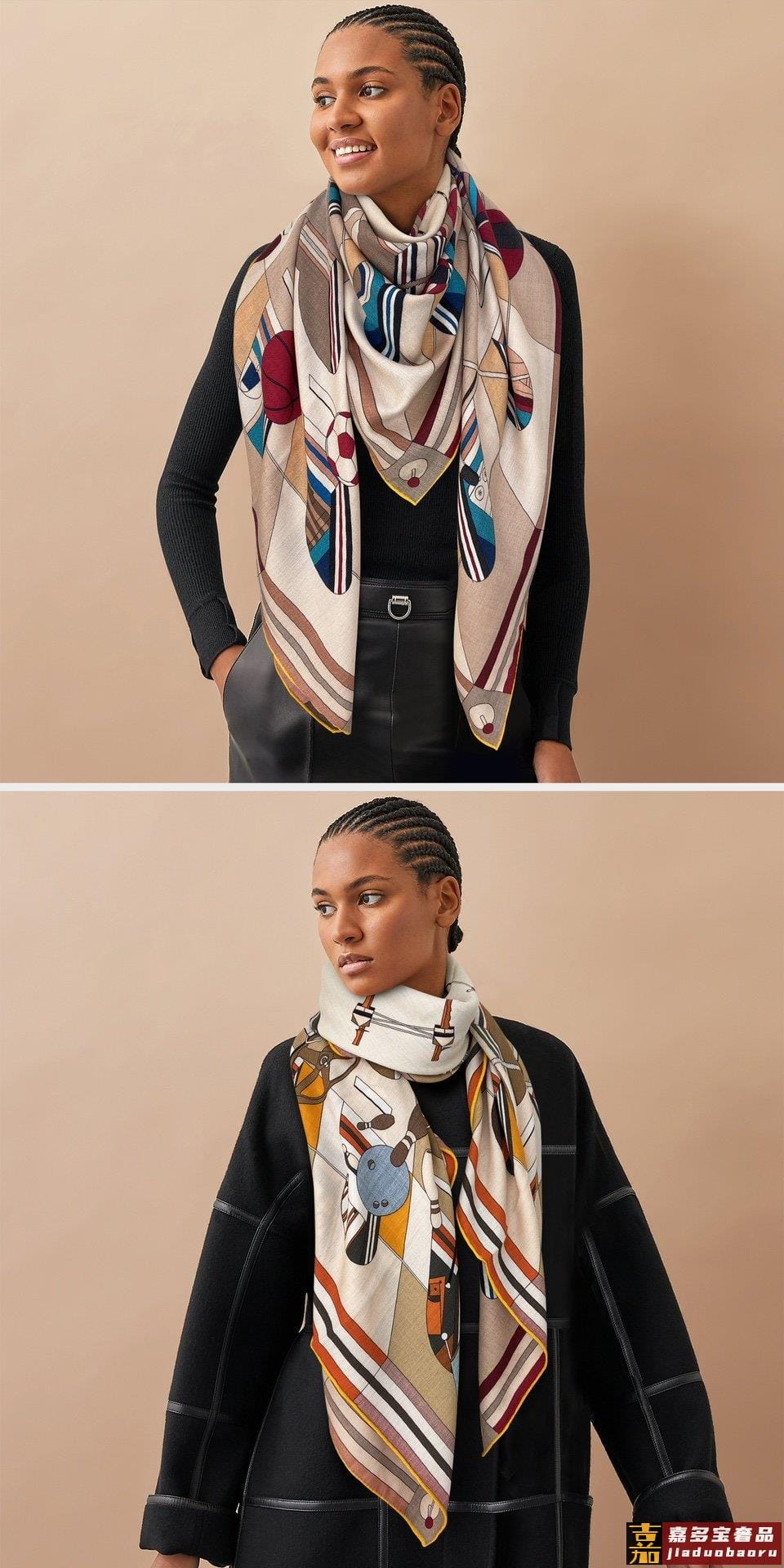 古驰围巾上的印花使用的是一种循环往复引人入梦的图案用于表现标