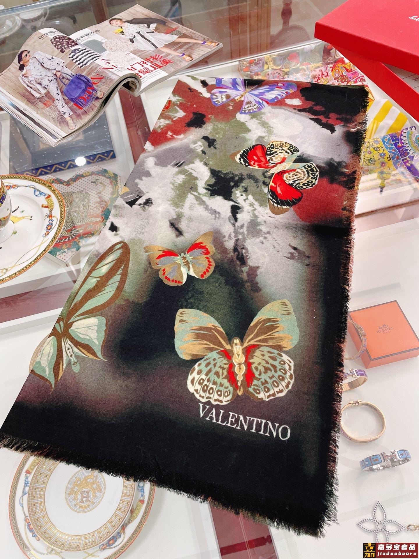 华伦天奴实物比图片要美高端加密肌理纹路戒指绒蝴蝶的精细水墨风