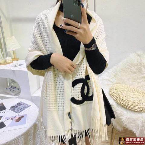 羊绒高品质商标吊牌齐全高端新款羊绒小香围巾简单百搭精致刺绣时