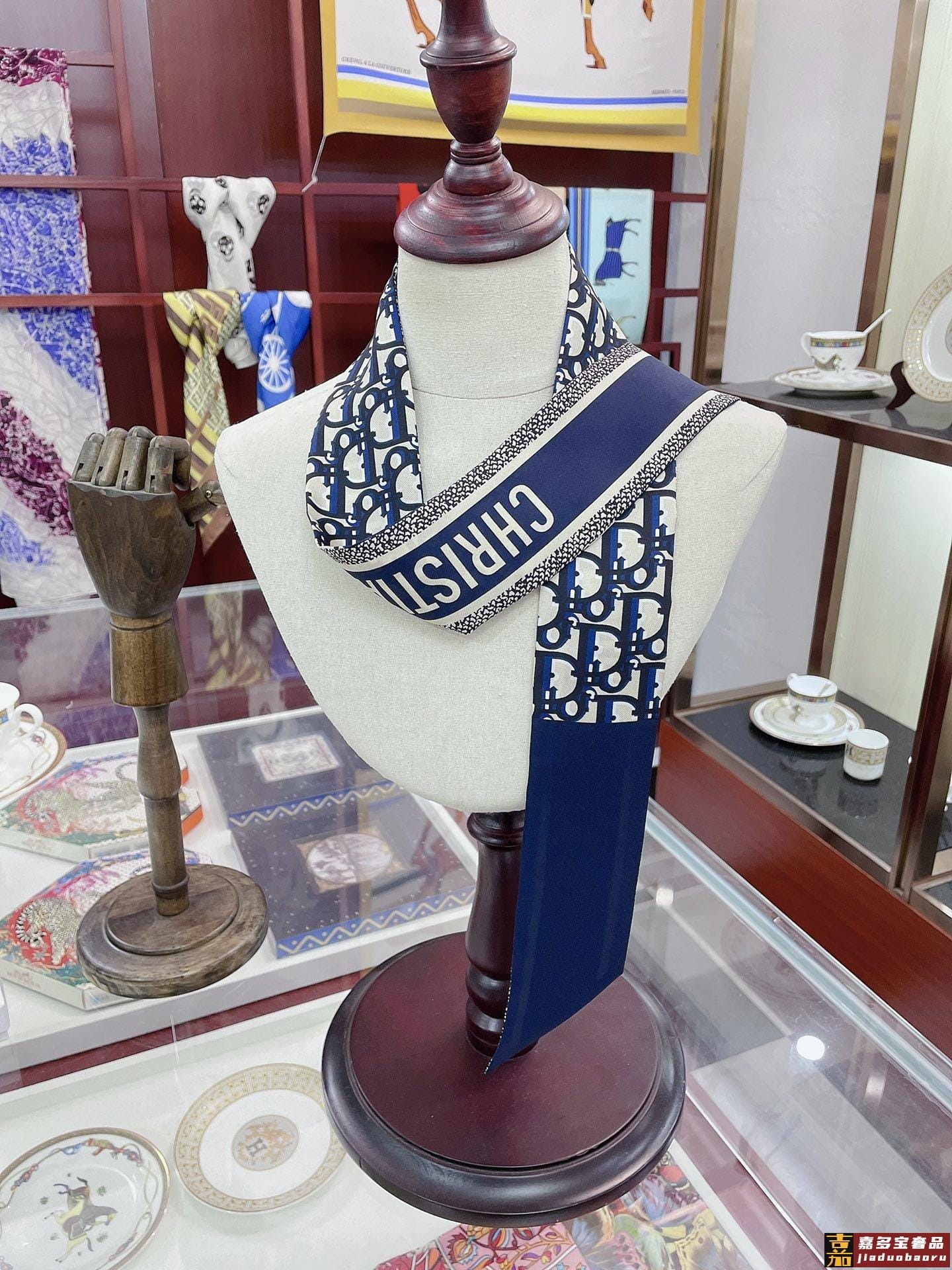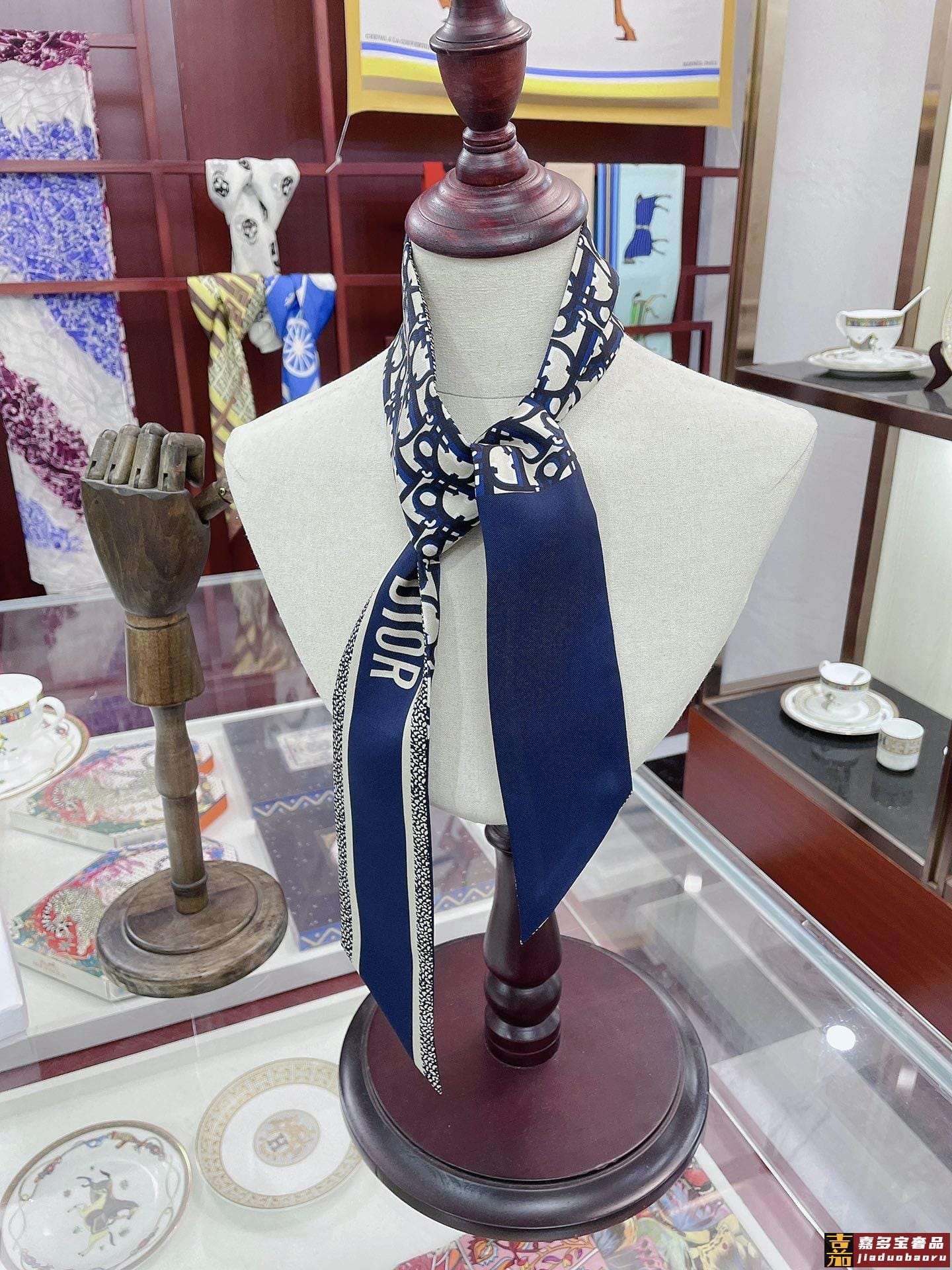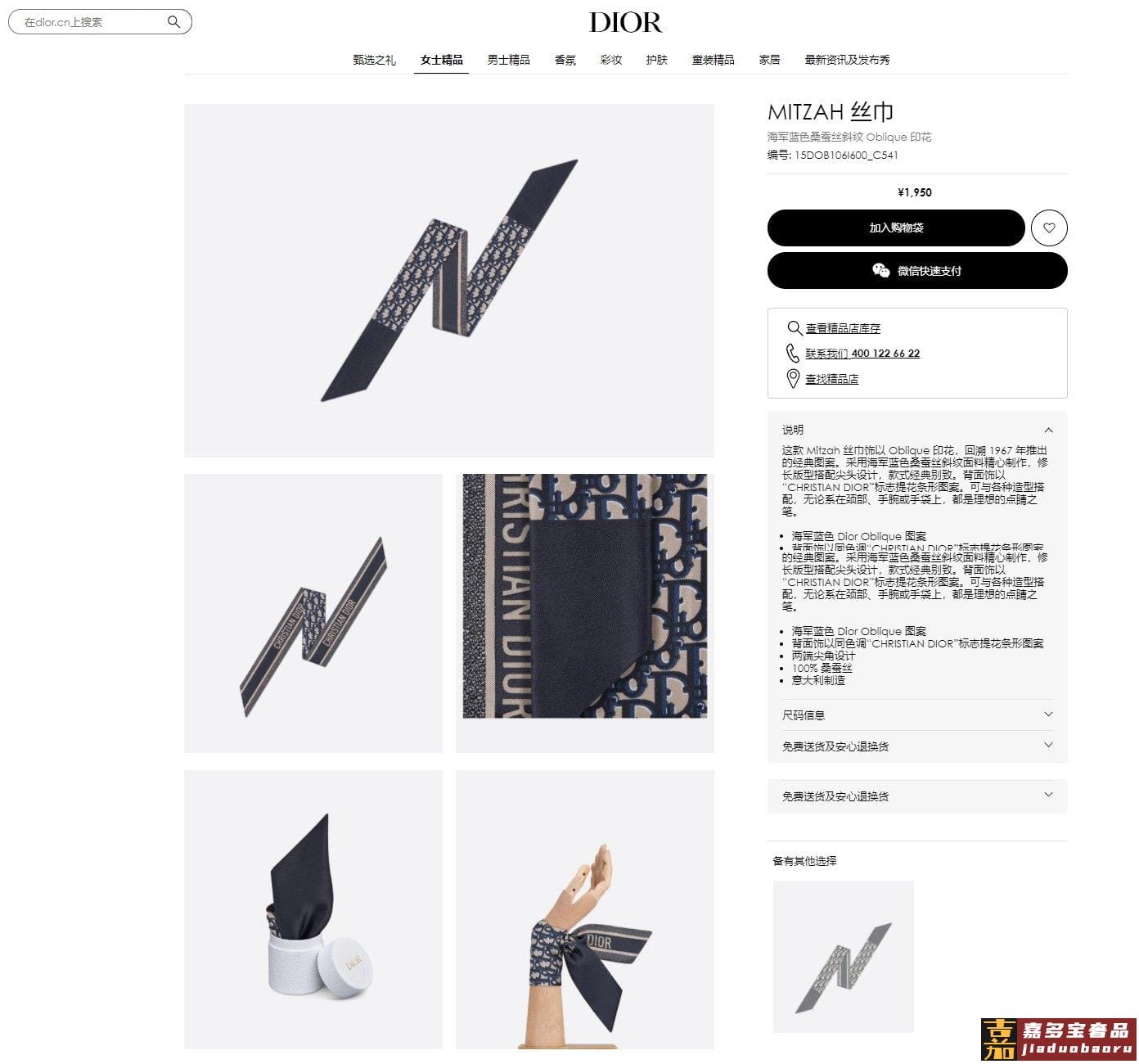新款这款丝巾饰以印花回溯年推出的经典图案采用海军蓝色桑蚕丝斜