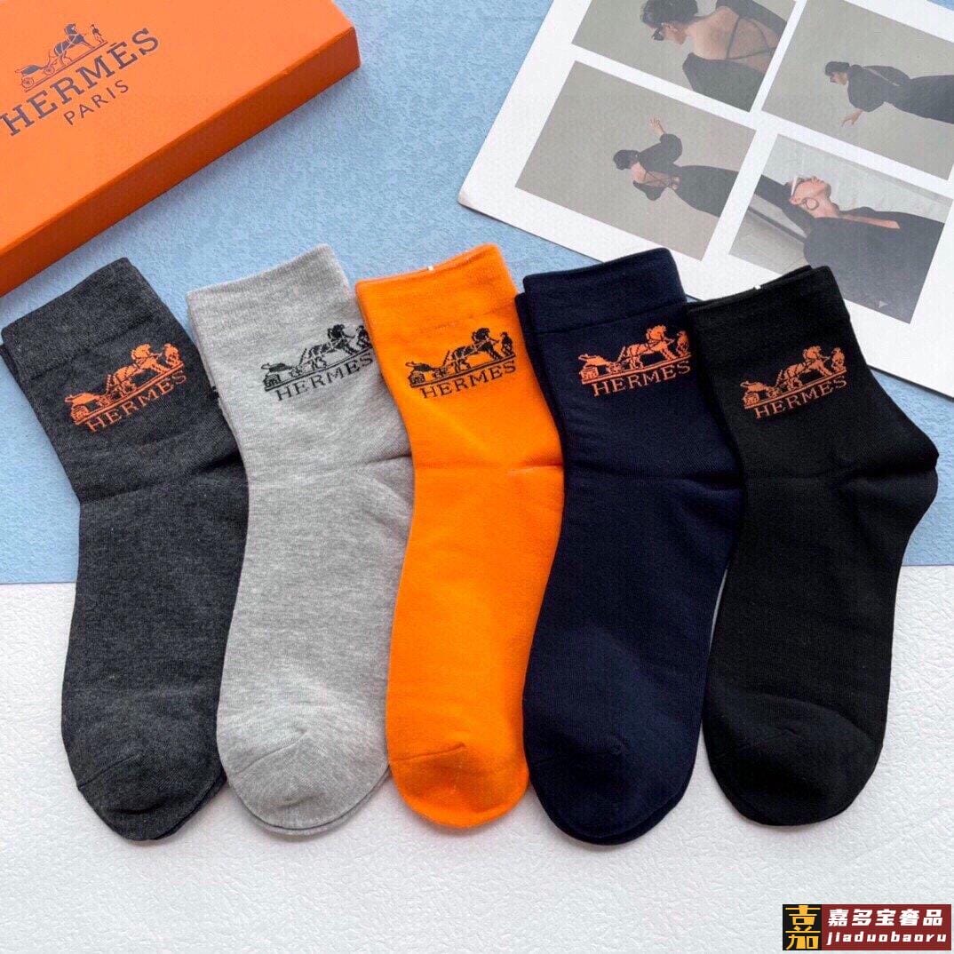 配包装一盒五双爱马仕经典中筒袜子纯棉面料专柜同步上新袜身提花