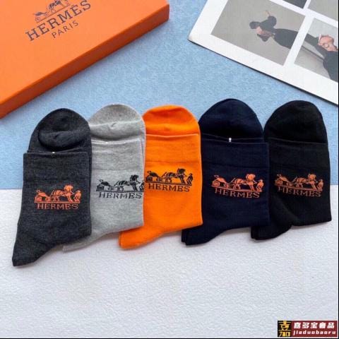 配包装一盒五双爱马仕经典中筒袜子纯棉面料专柜同步上新袜身提花