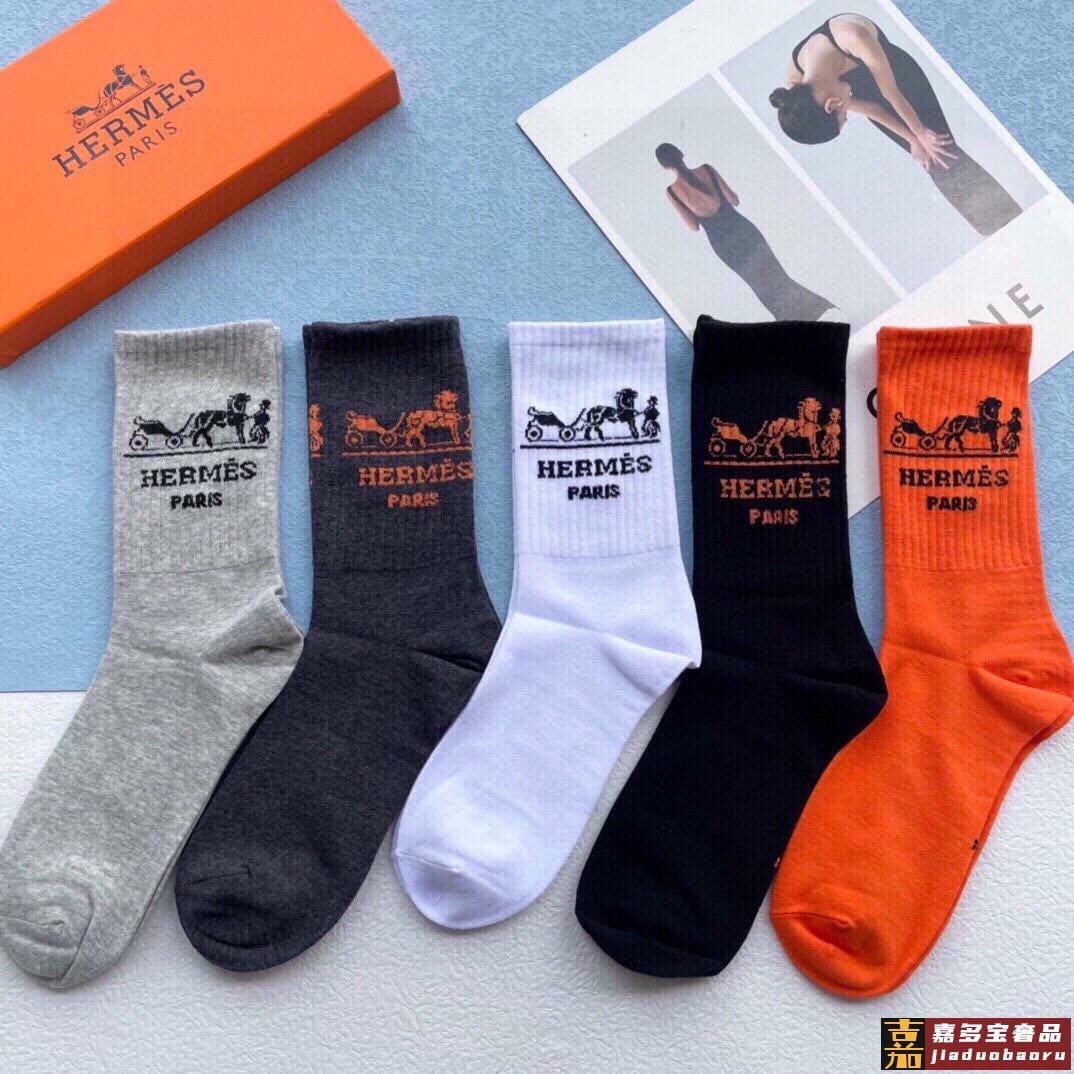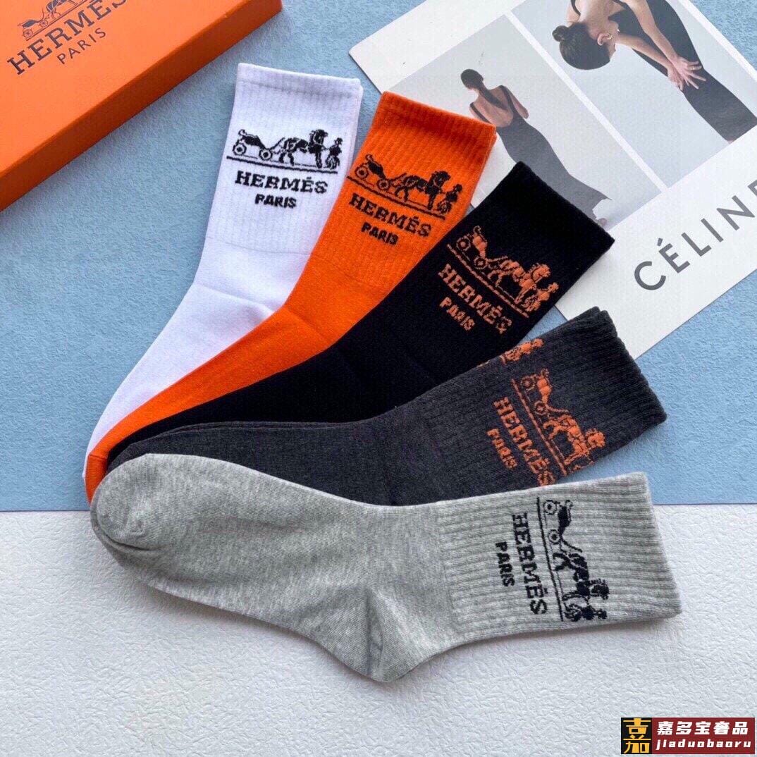 配包装一盒五双爱马仕经典中长筒袜子纯棉面料专柜同步上新袜身提