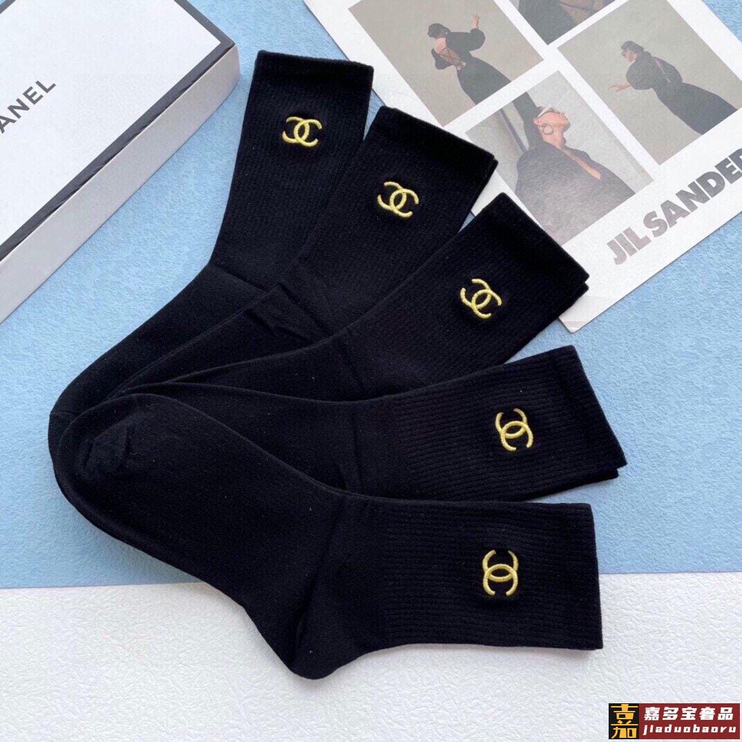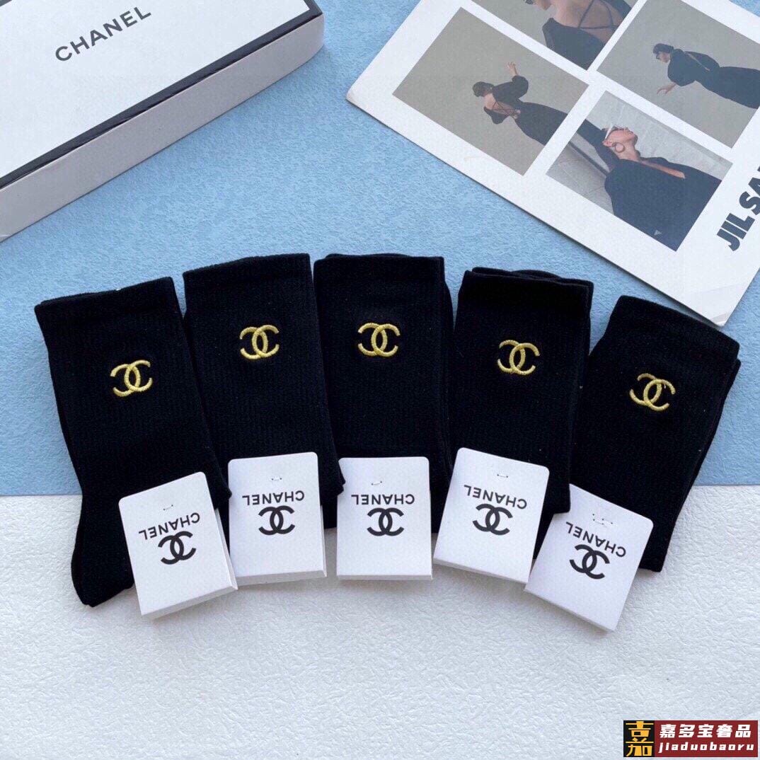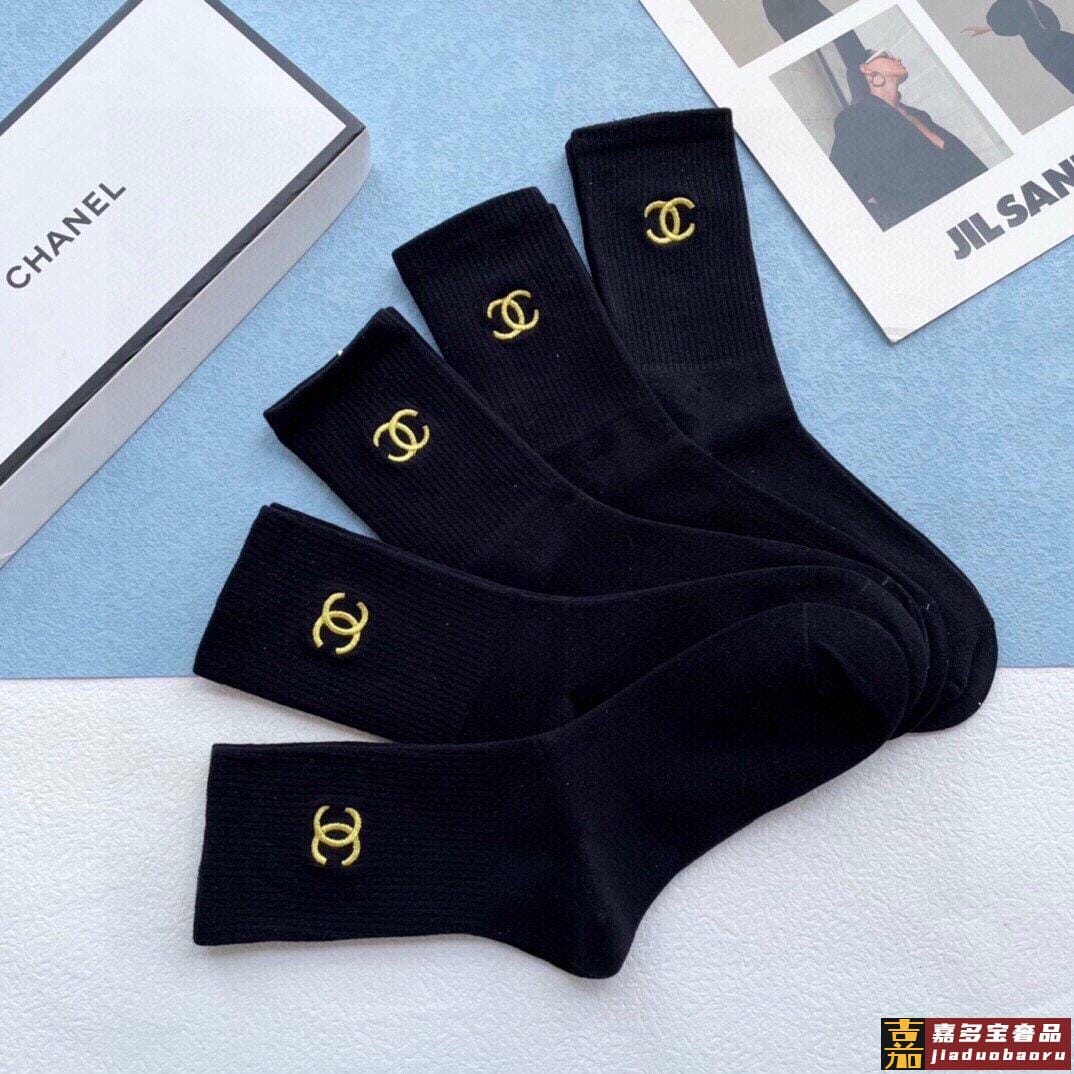 配包装一盒五双香奈儿香奶奶家新品女长款袜子袜身提花经典标志简