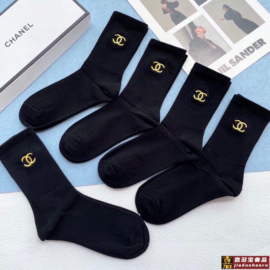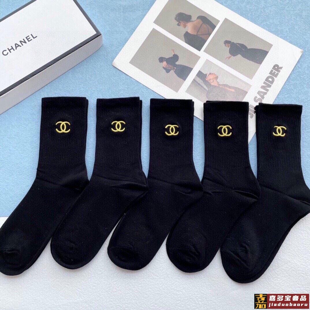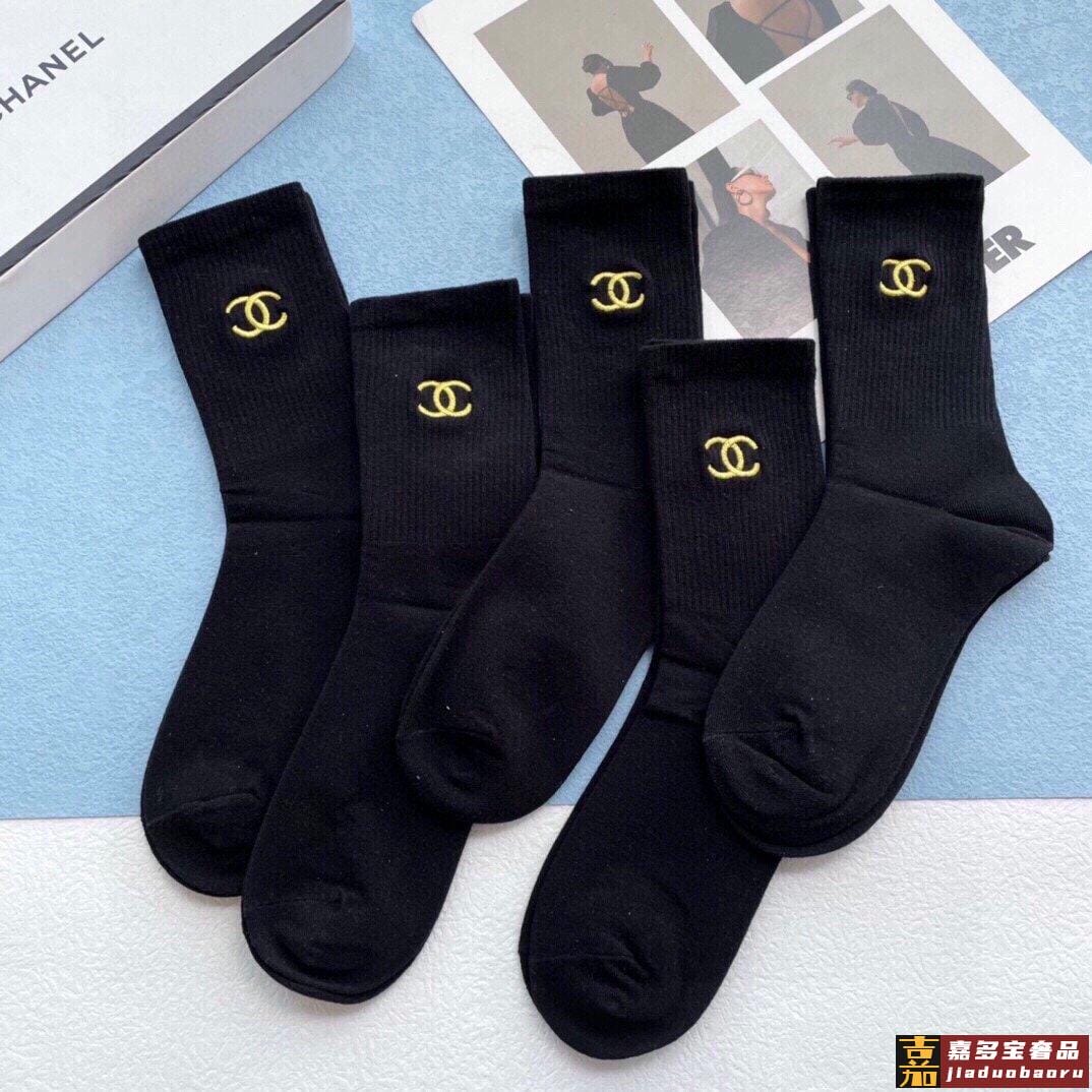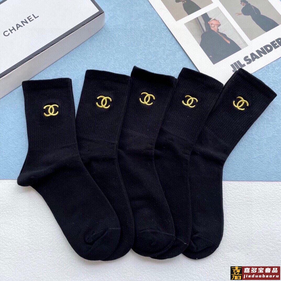 配包装一盒五双香奈儿香奶奶家新品女长款袜子袜身提花经典标志简