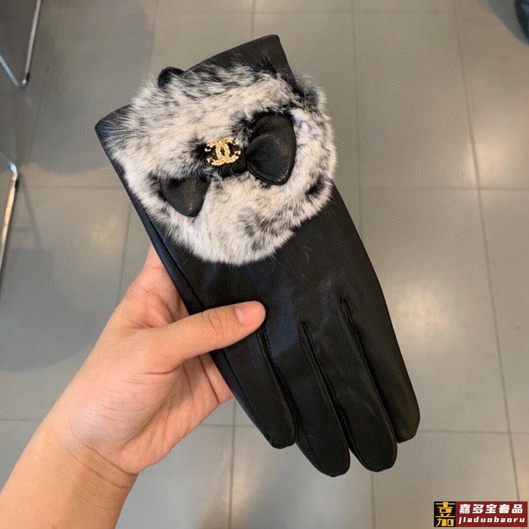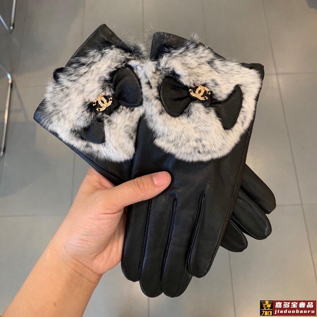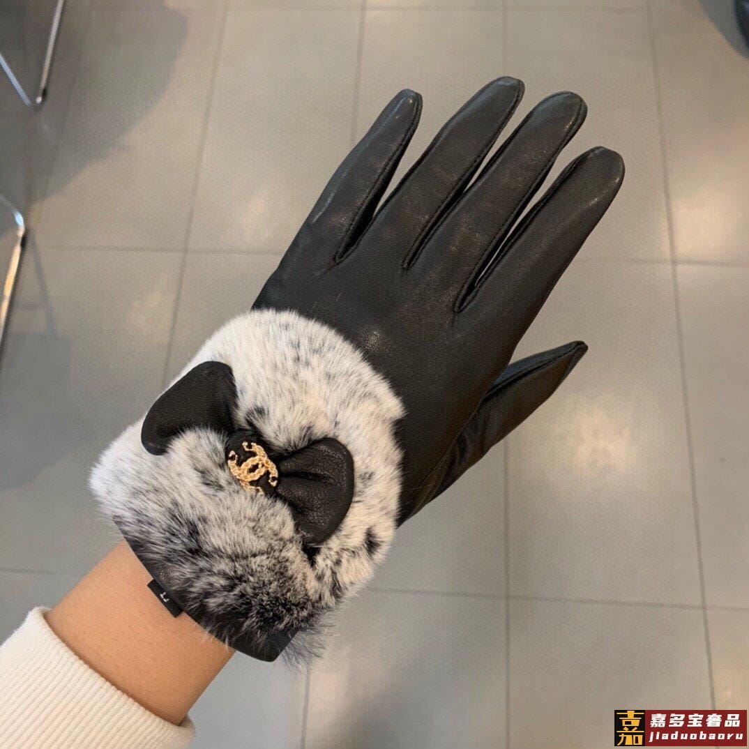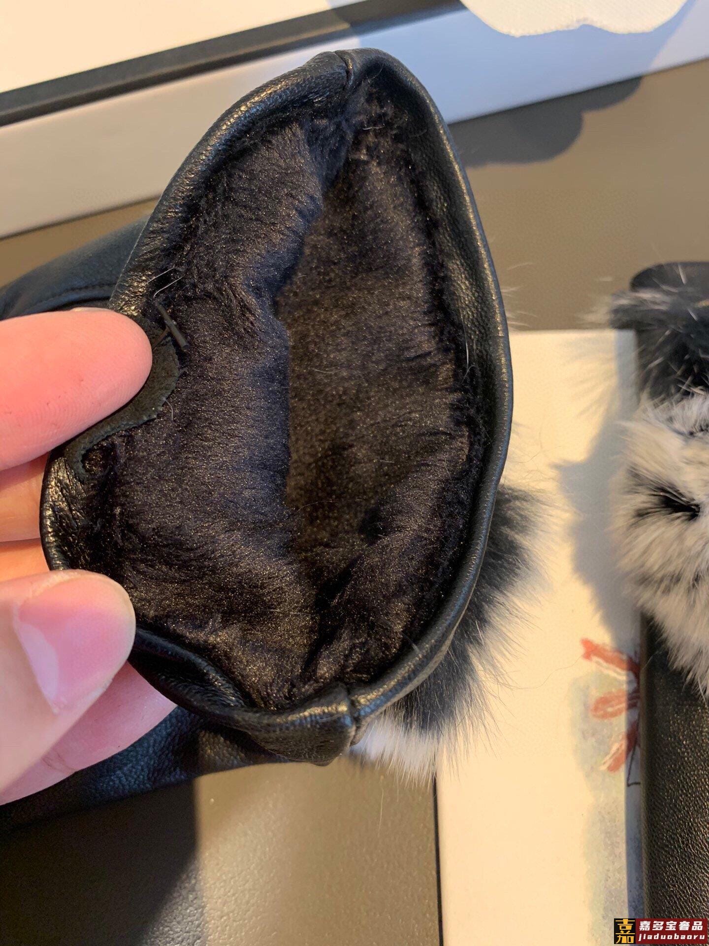 意大利出口香奈儿原单尾单手套采用顶级白山羊皮狐狸毛注意是真狐