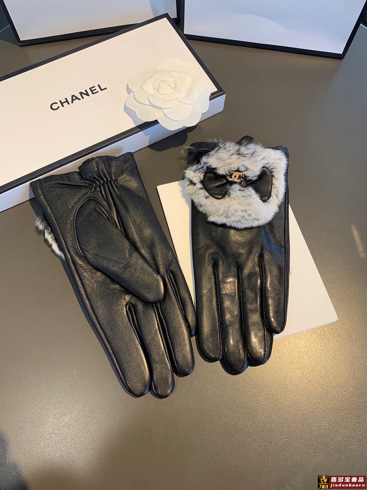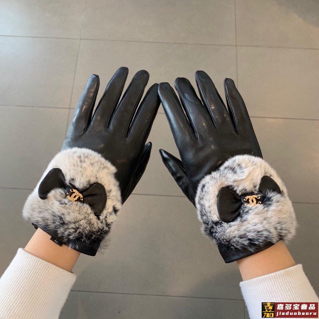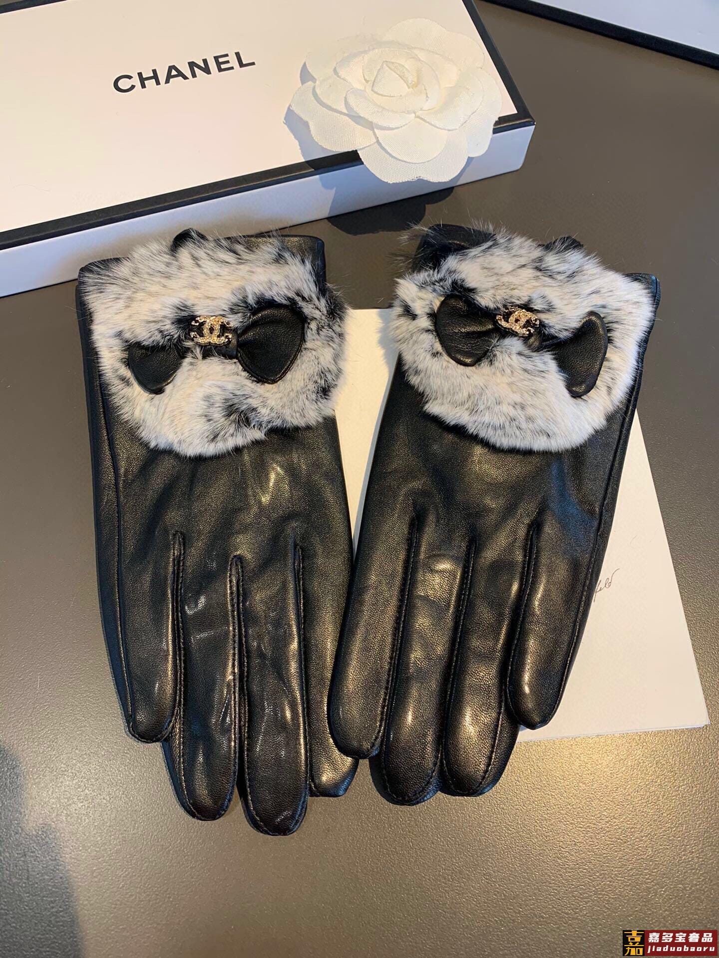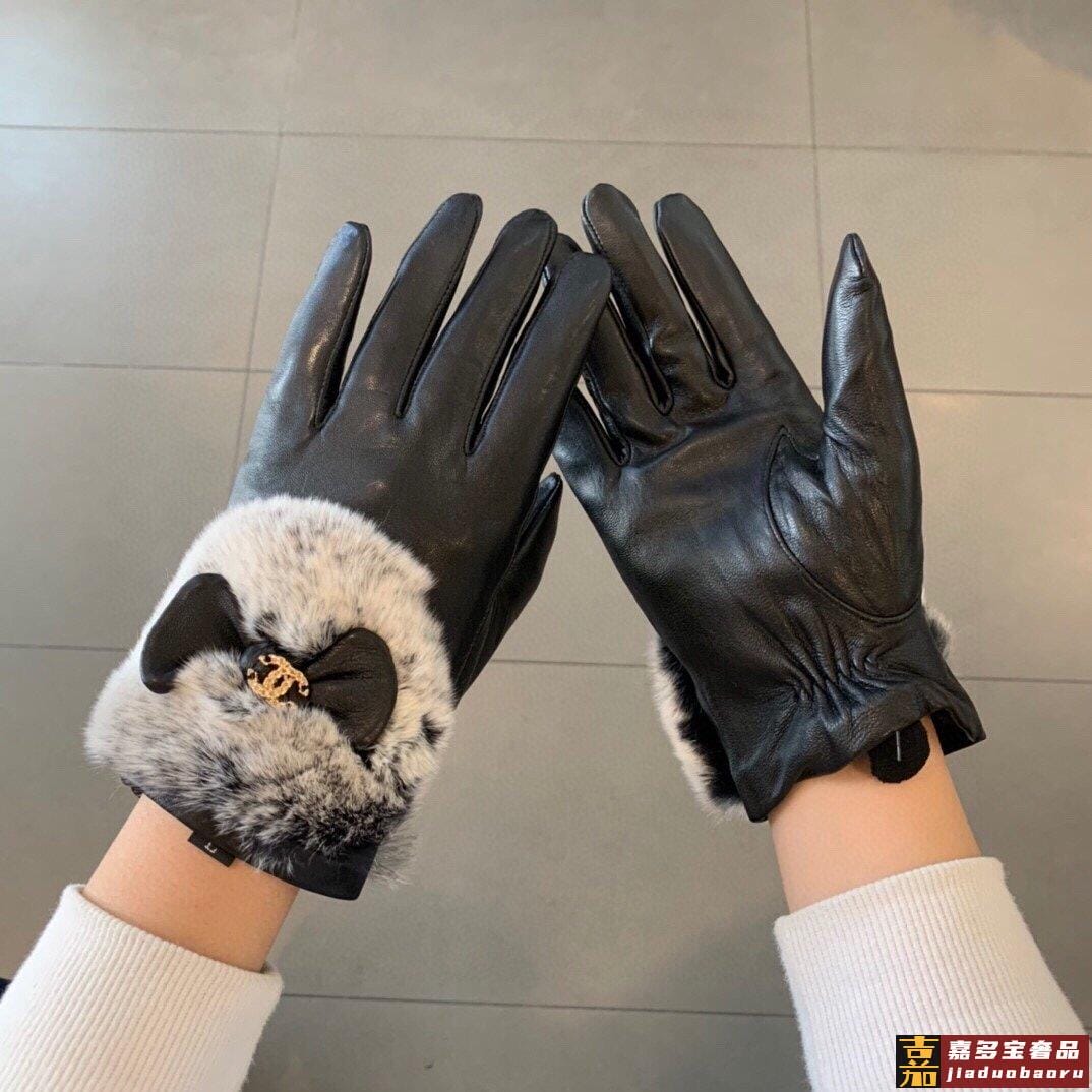 意大利出口香奈儿原单尾单手套采用顶级白山羊皮狐狸毛注意是真狐