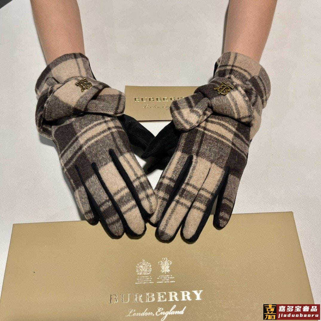 配包装巴宝莉专柜新品羊毛手套时尚手套秋冬保暖加绒内里经典格子