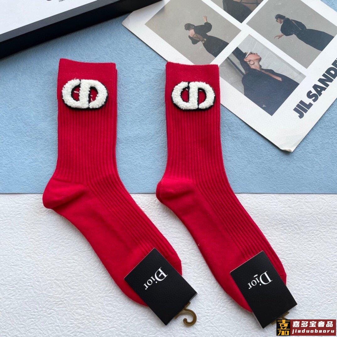 配包装一盒二双迪奥过年红红火火爆款高筒袜高版本好看到爆炸欧美