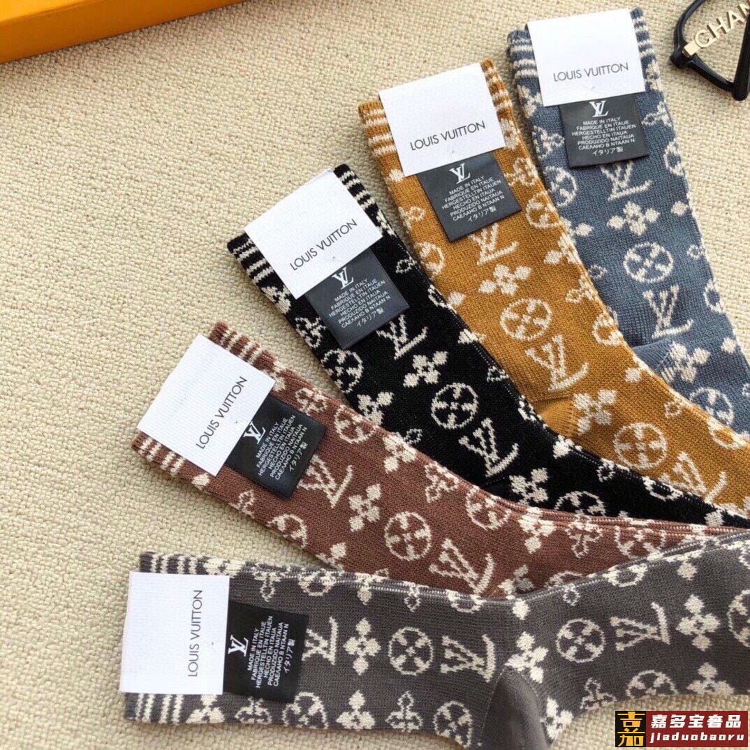 配包装一盒五双路易威登爆款双针双路长筒袜高版本好看到爆炸欧美