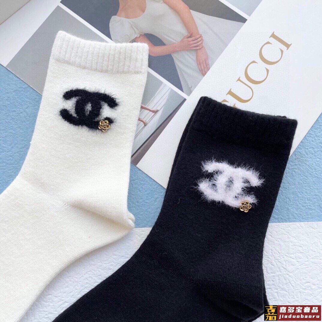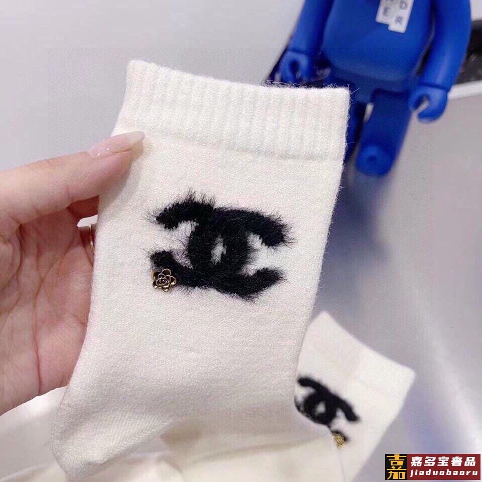 配包装一盒二双香奈儿专柜新款男女款水貂毛高筒袜子专柜同步上新