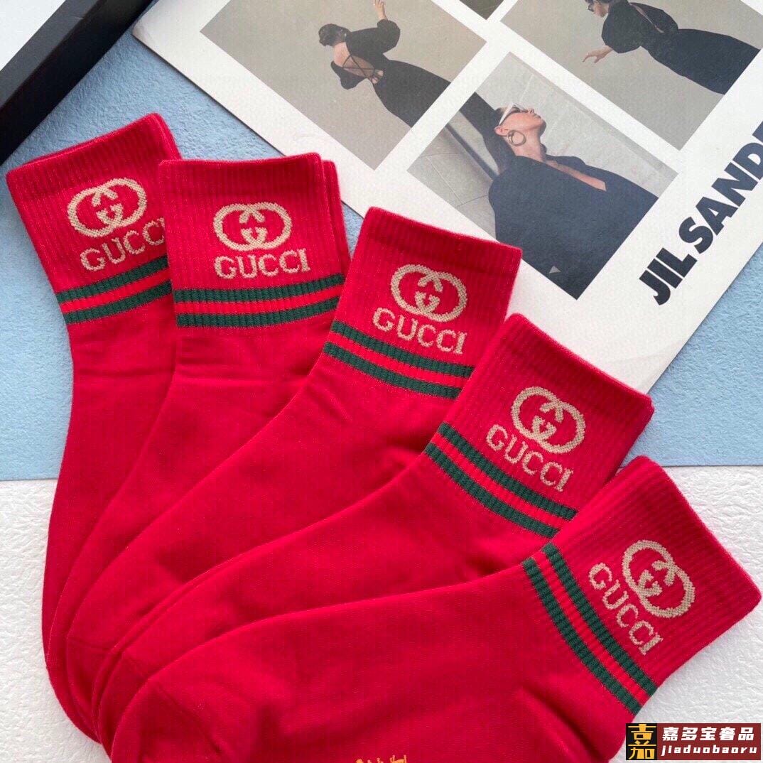 配包装一盒五双古奇欧美大牌爆款红色过年中筒袜高版本好看到爆炸