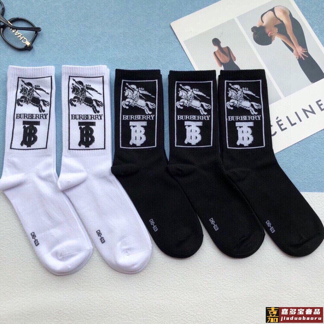 配包装一盒五双巴宝莉专柜最新款战马袜子巴家专柜同步中长袜经典
