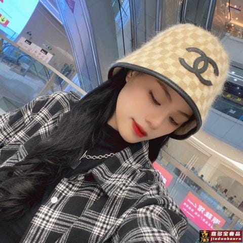 香奈儿棋盘格秋冬新款毛线粗纺水桶帽大火的流行元素真是越看越好