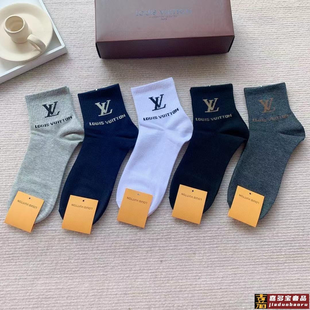 配包装一盒双路易威登男款纯棉面料潮人必备爆款经典字母短筒袜个