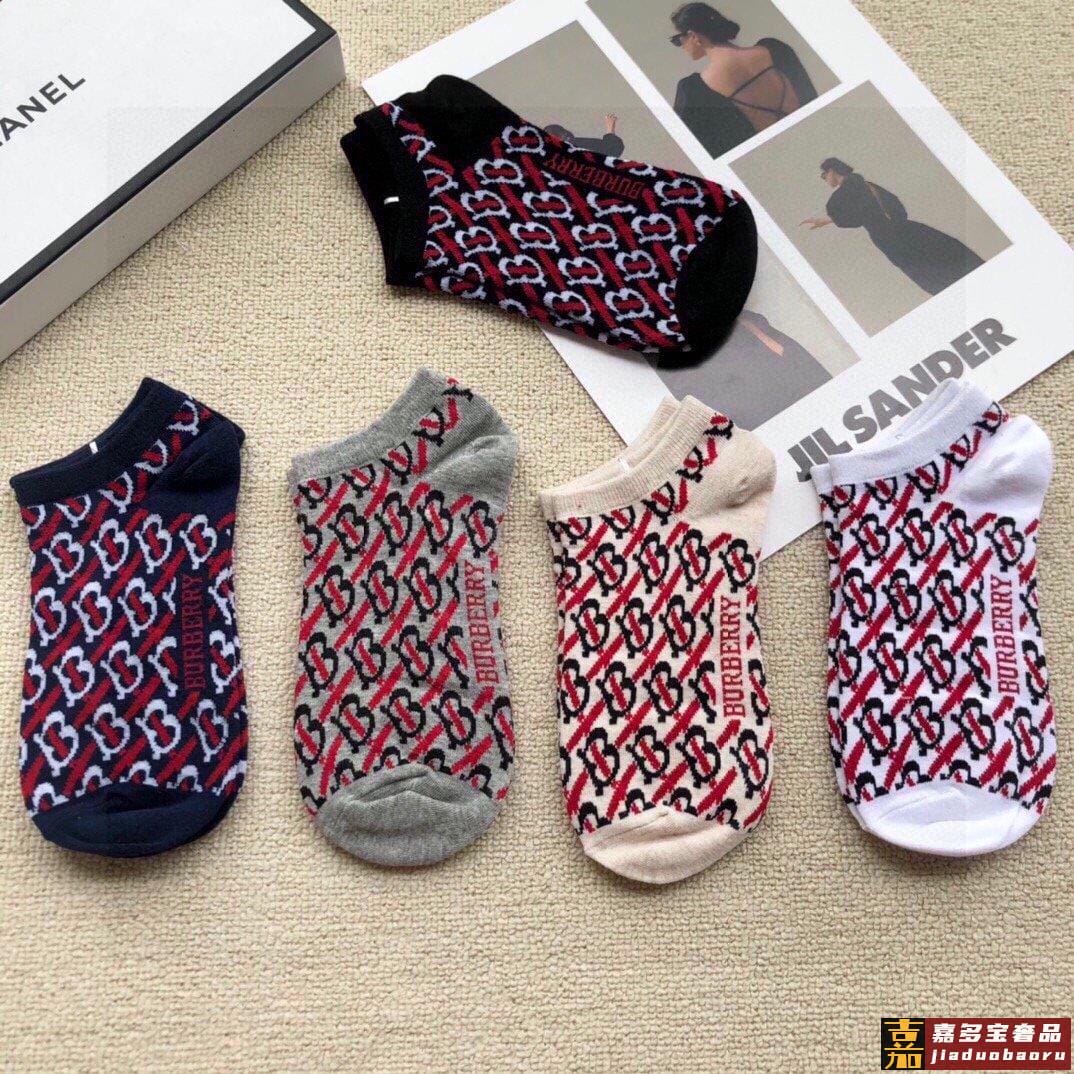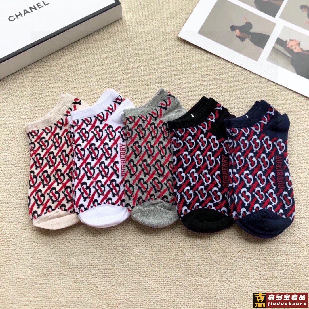 配包装一盒五双巴宝莉家新品男女款春夏短款袜子大家专柜同步短袜罗口提花经典品牌全称搭配超抢眼素色系实物超漂亮超火爆小单品大牌出街潮人必备超好搭