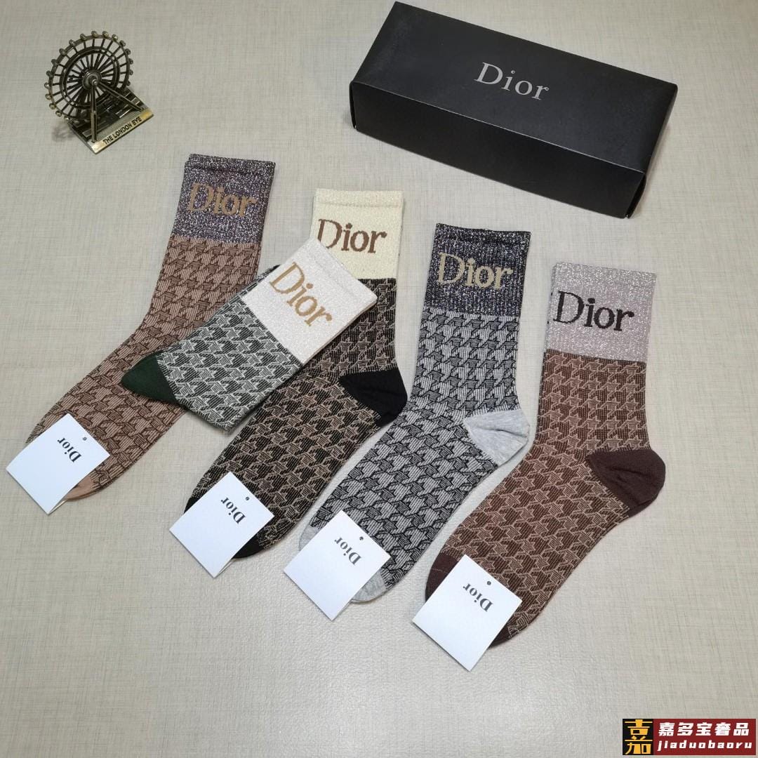配包装一盒双迪奥新款字母罗口小腿袜子爆款字母专柜同步长款袜大