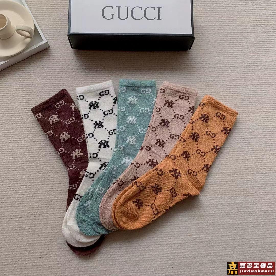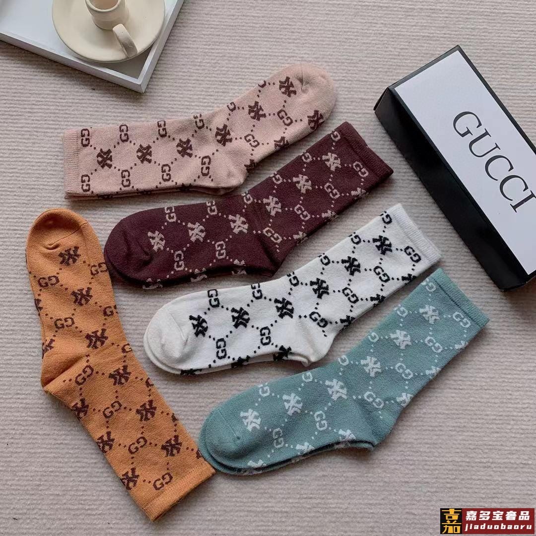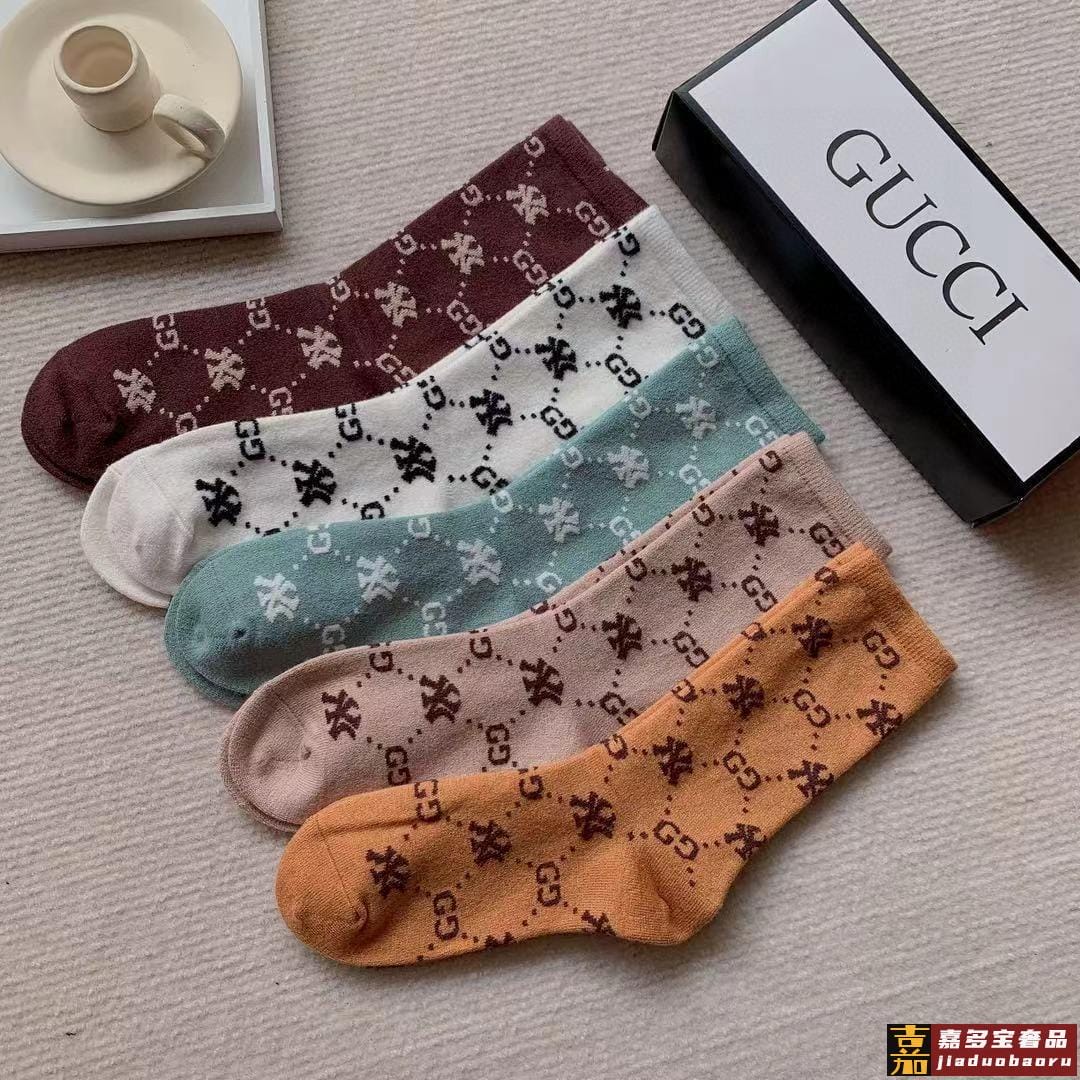 配包装一盒五双爆款古奇欧美大牌新品烫金中筒男女款袜子专柜同步
