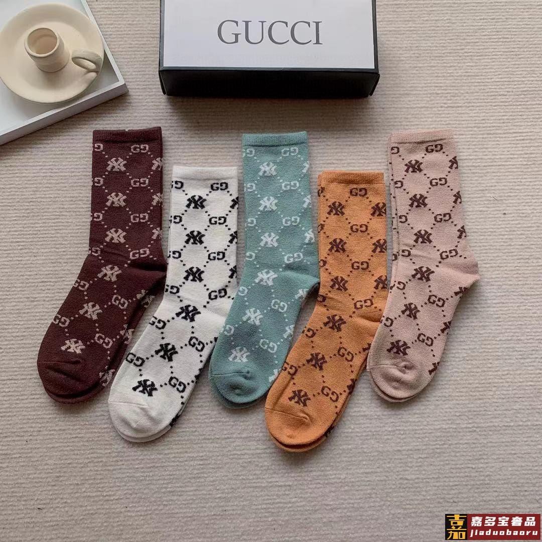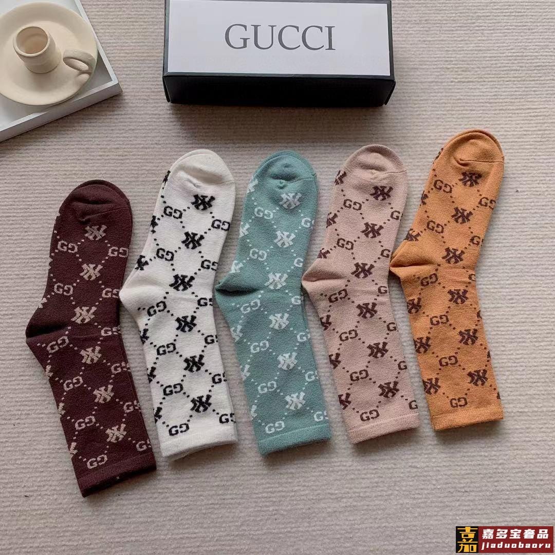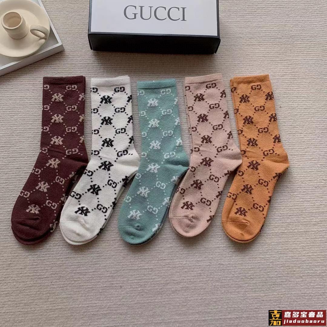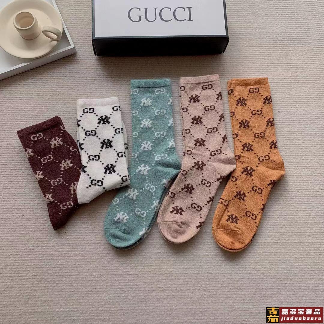 配包装一盒五双爆款古奇欧美大牌新品烫金中筒男女款袜子专柜同步