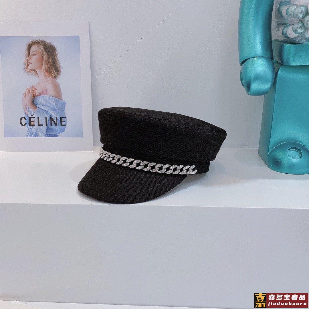 亚力山大王新款斜纹棉军帽报童帽高端定制名媛闪钻链条酷酷的时尚