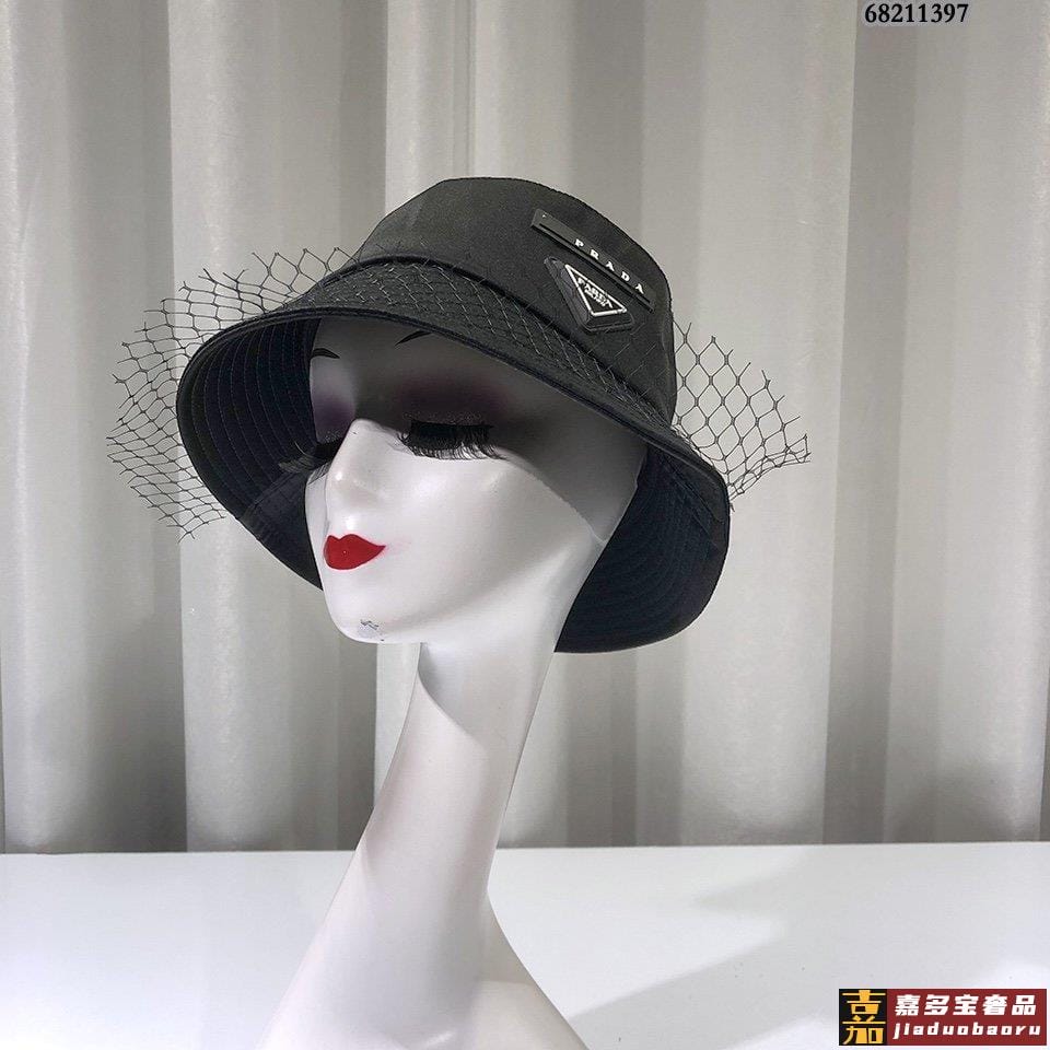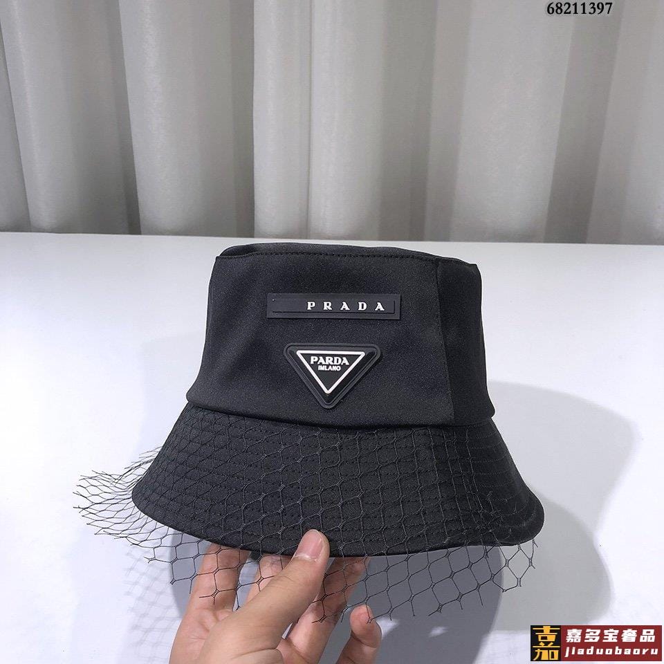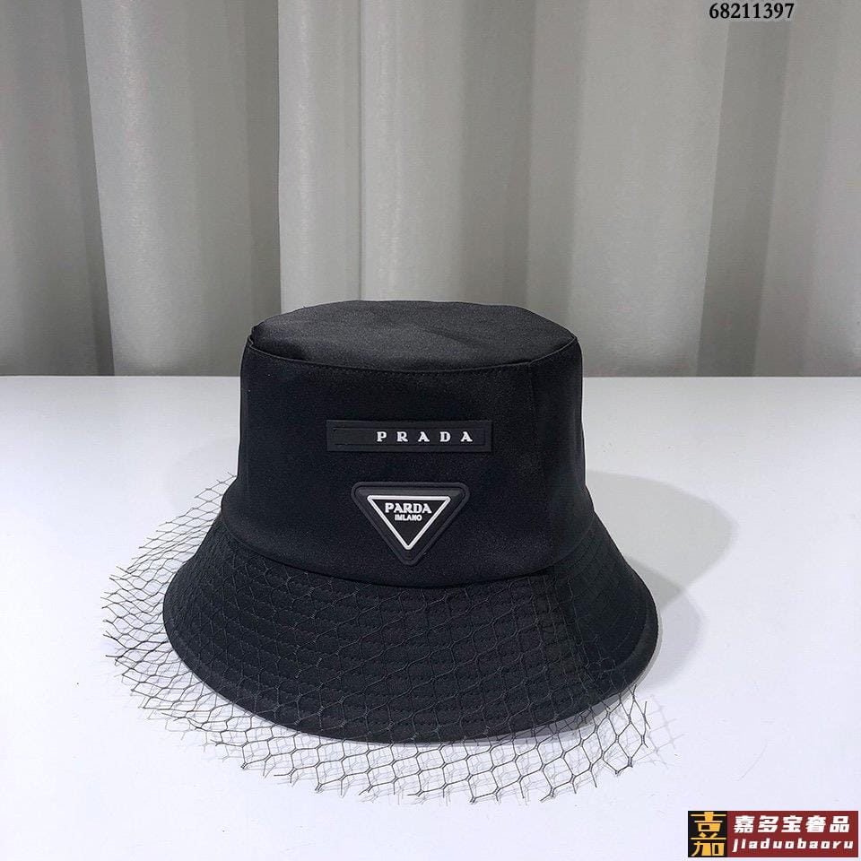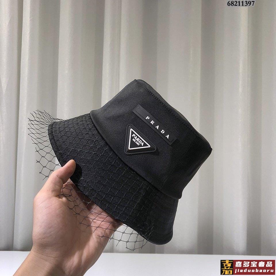 普拉达早秋新款防水布系列渔夫帽精致网纱拼接标志满屏设计感经典