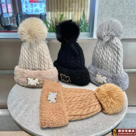 迪奥秋冬新款迪奥针织毛线帽韩版潮流套头加厚保暖毛球针织帽网红