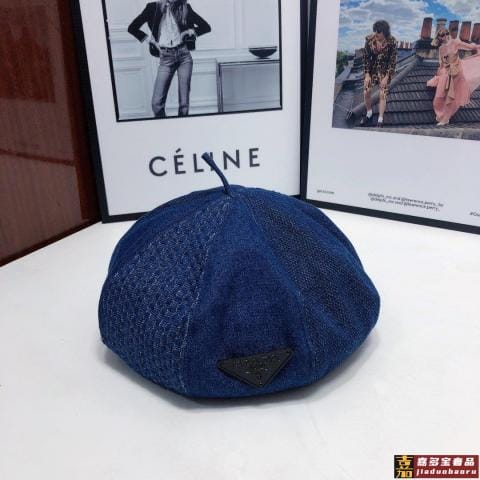 普拉达早秋新款洗水牛仔贝雷帽画家帽经典的画家贝雷帽每年早秋总