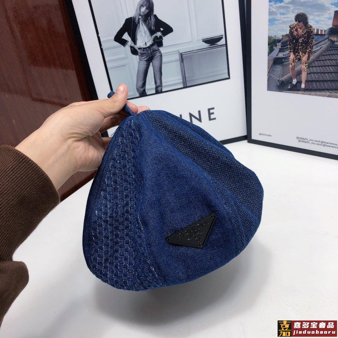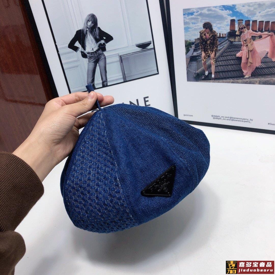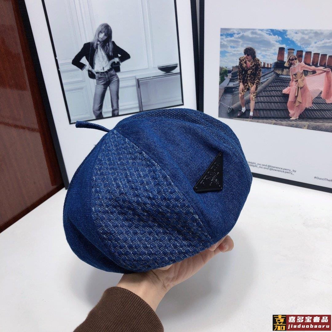 普拉达早秋新款洗水牛仔贝雷帽画家帽经典的画家贝雷帽每年早秋总
