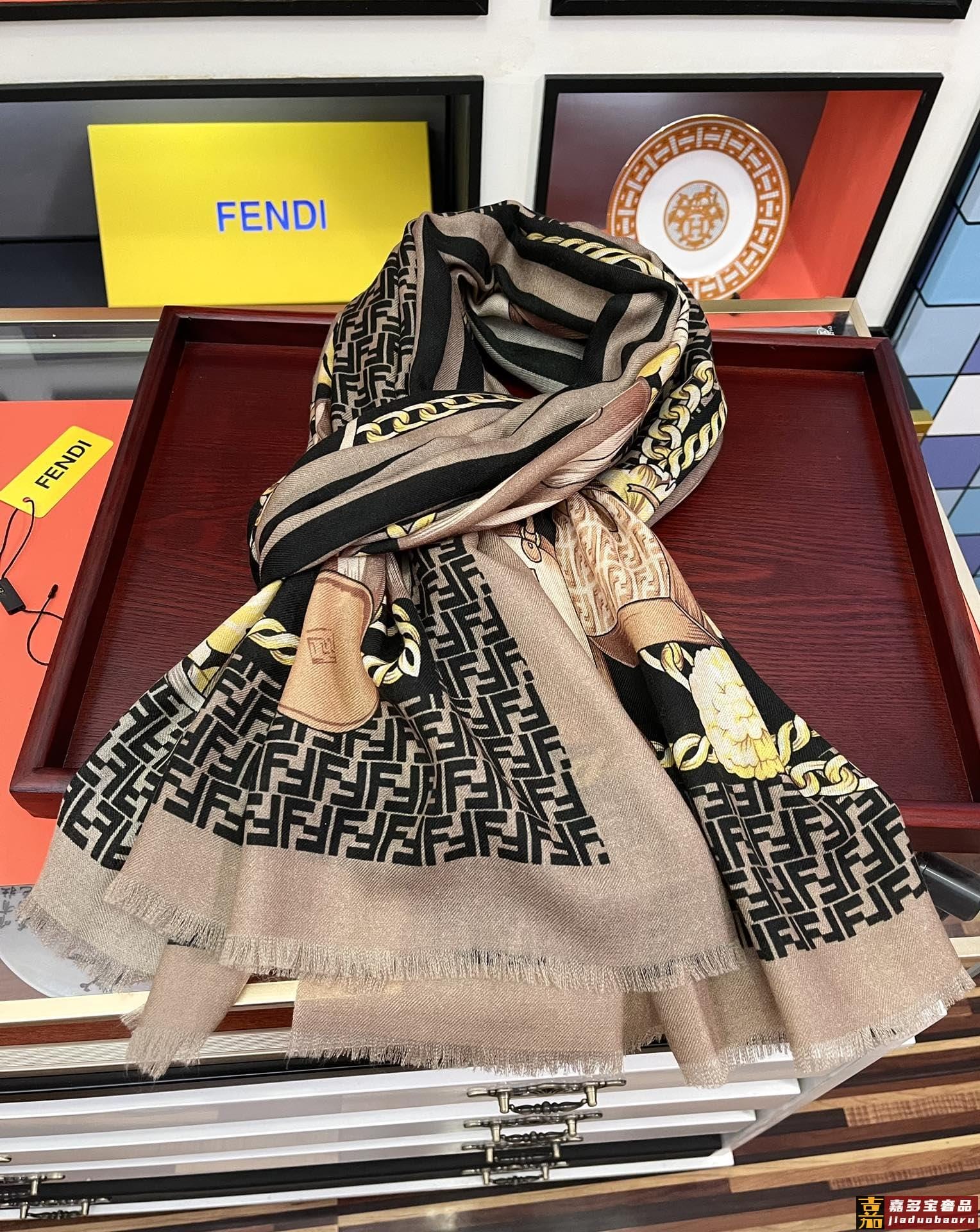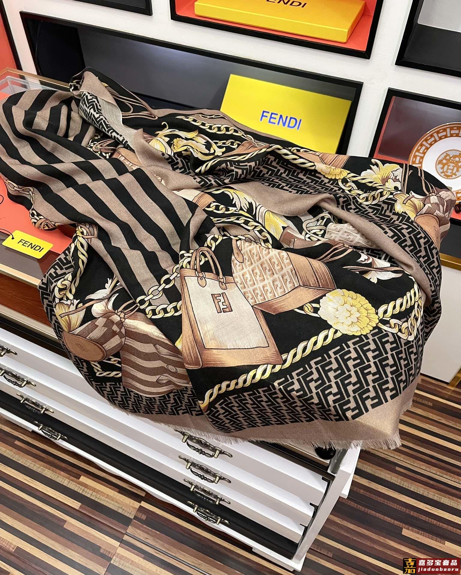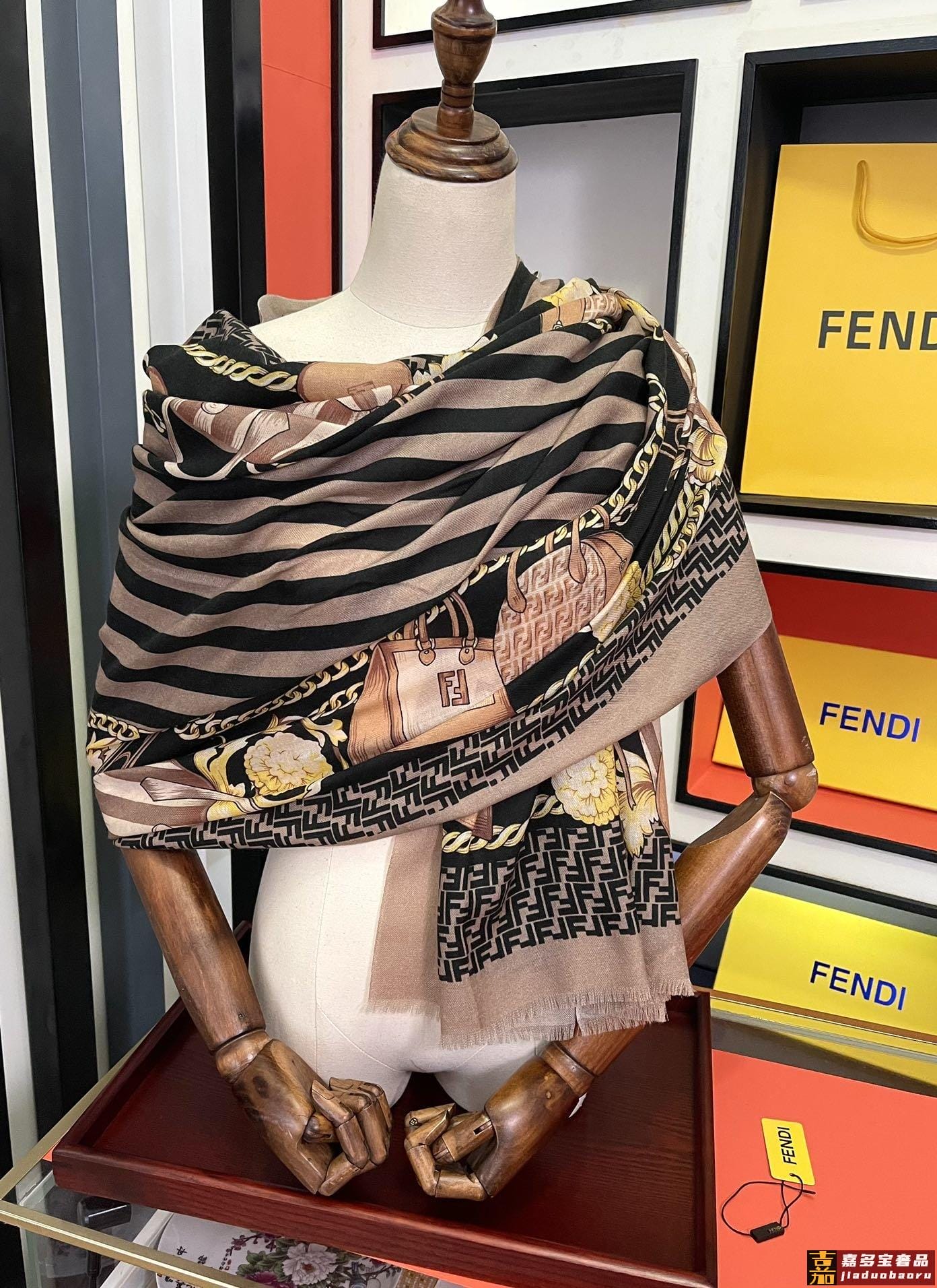 年新款男女同款双面提花围巾芬迪一改往日的老花系列采用复古格子